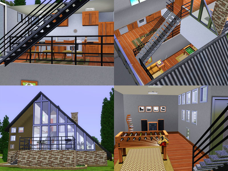 Show your sim has made it with this awesome looking home. Shared living space open to all three stories! Lovely kitchen and living room. If you want interesting architecture this house should be it. (LITTLE TIKI IDOL AND ULTRA TRASH DEPOSITORY XL NOT USED)