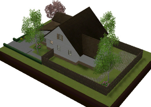 Compact home with two bedrooms, two bathrooms, living room, kitchen, dining room, driveway, private rear garden with patio and landscaped gardens. No custom content or store items used. The Lot has been fully tested.