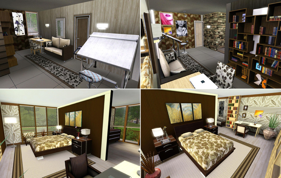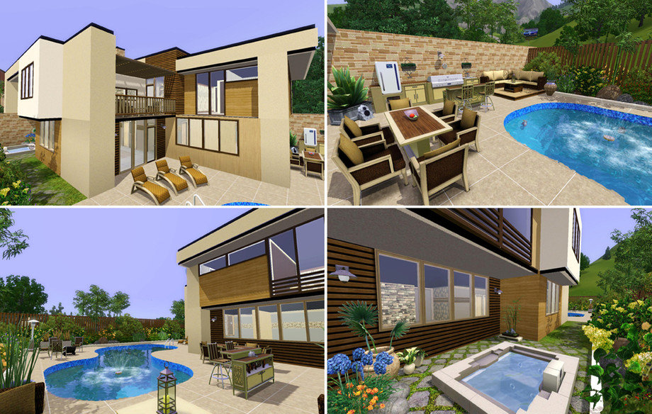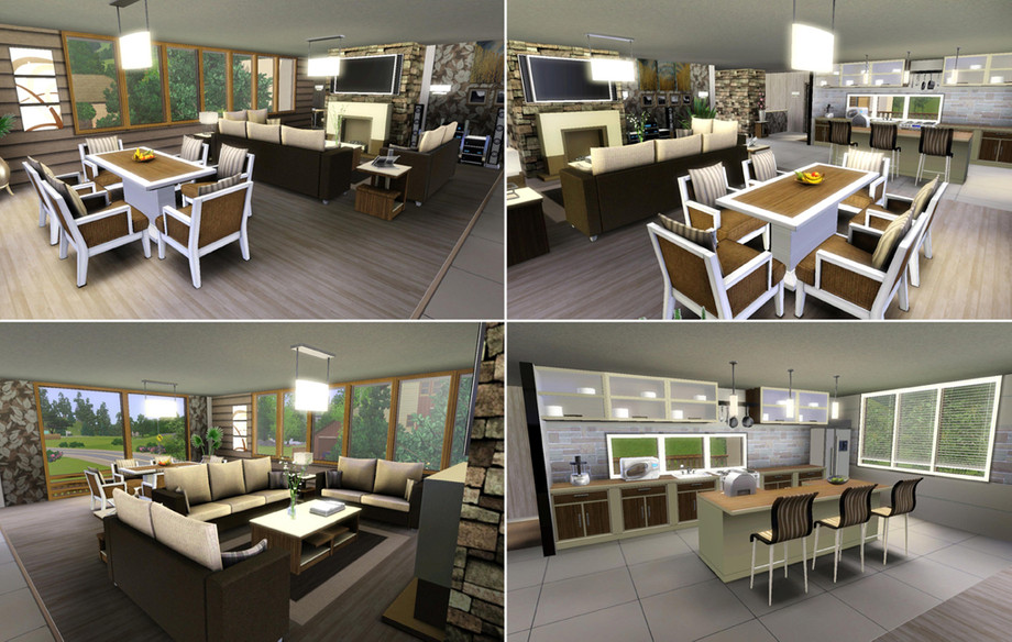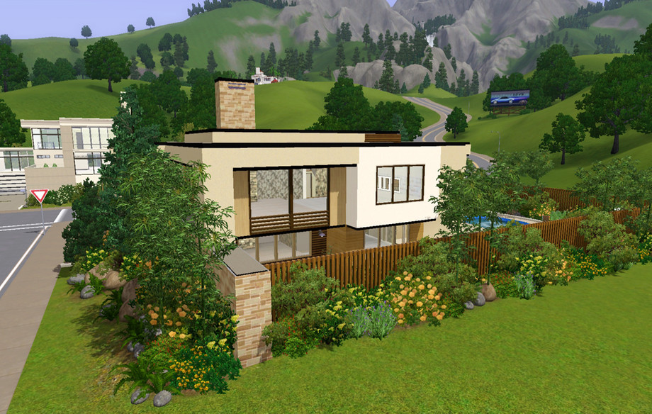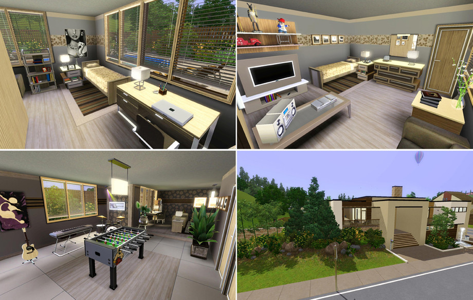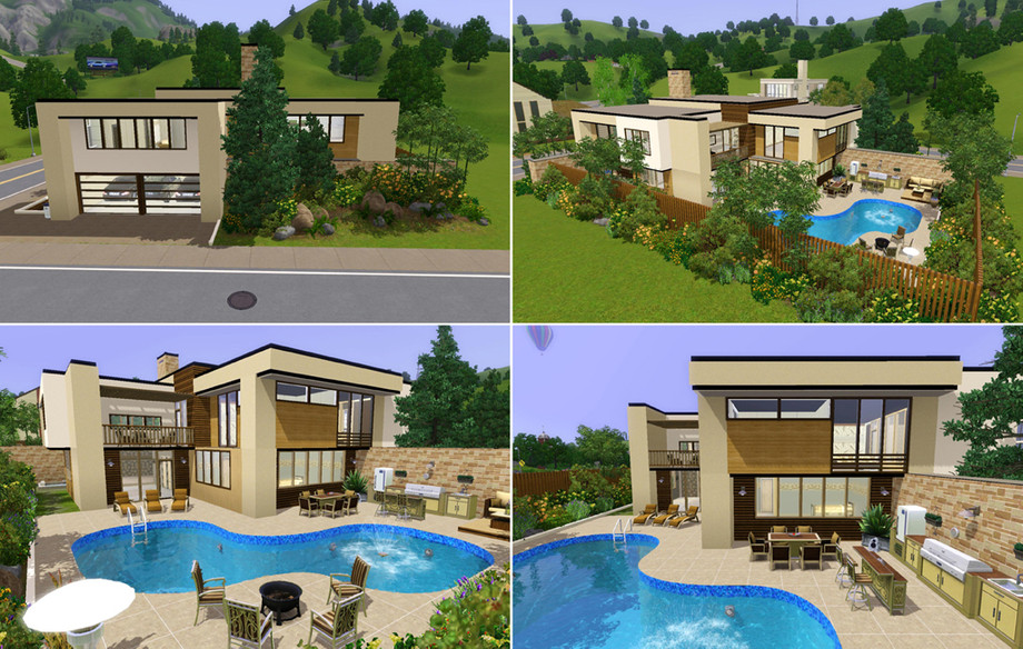 with modern furniture, has all the facilities and rooms that a rich sim wants.