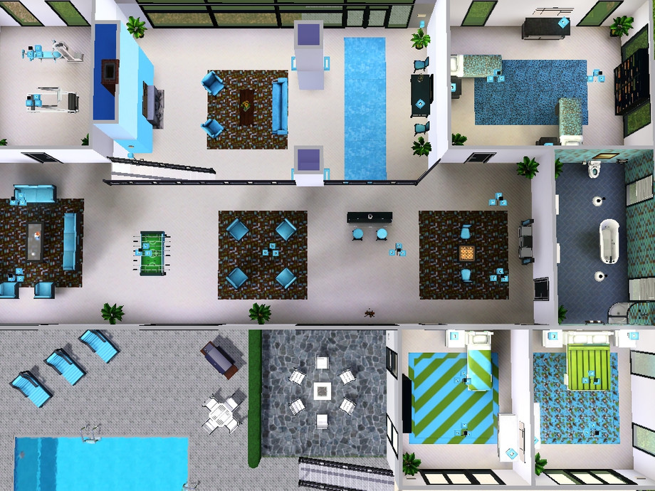 5 bedrooms, 3 bathrooms, office, gym, living room, family room, pool.