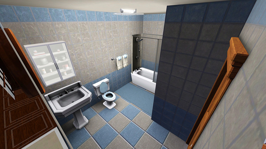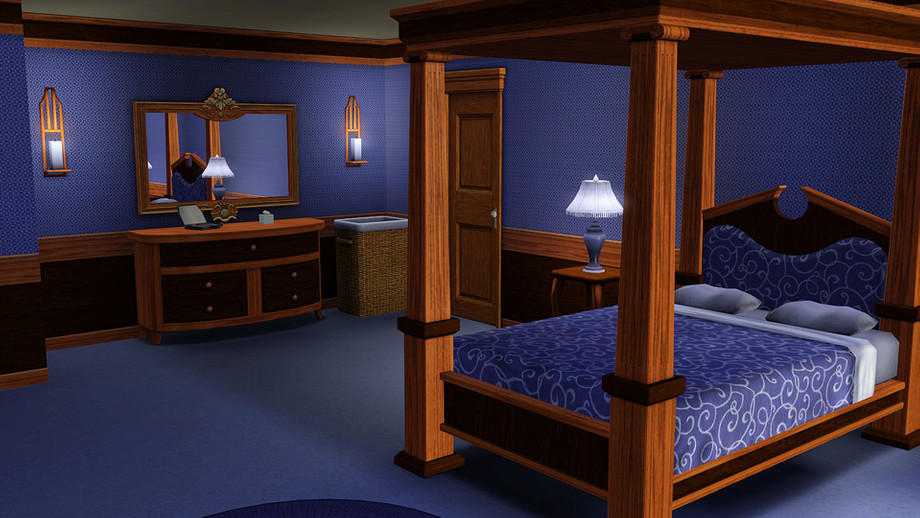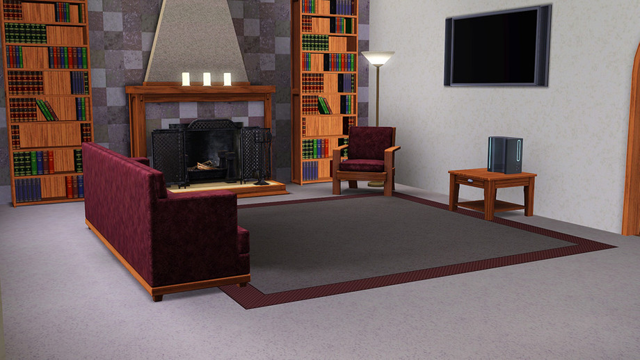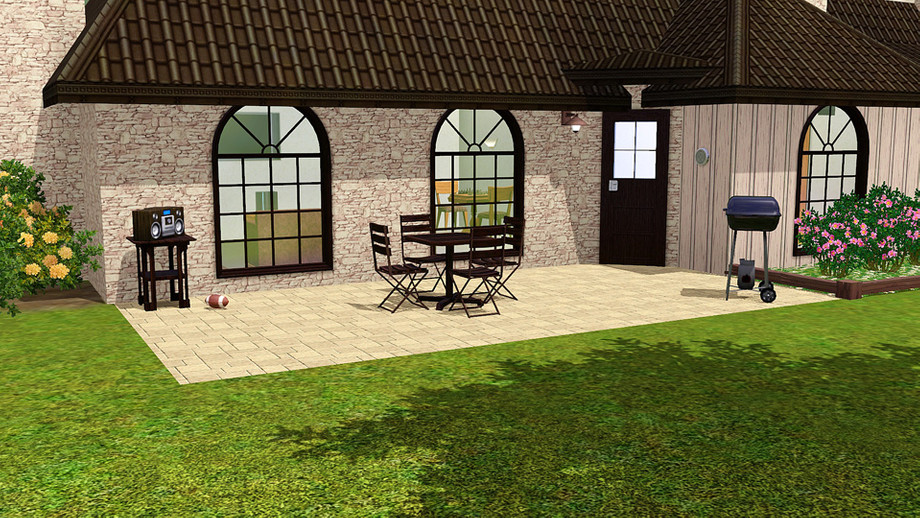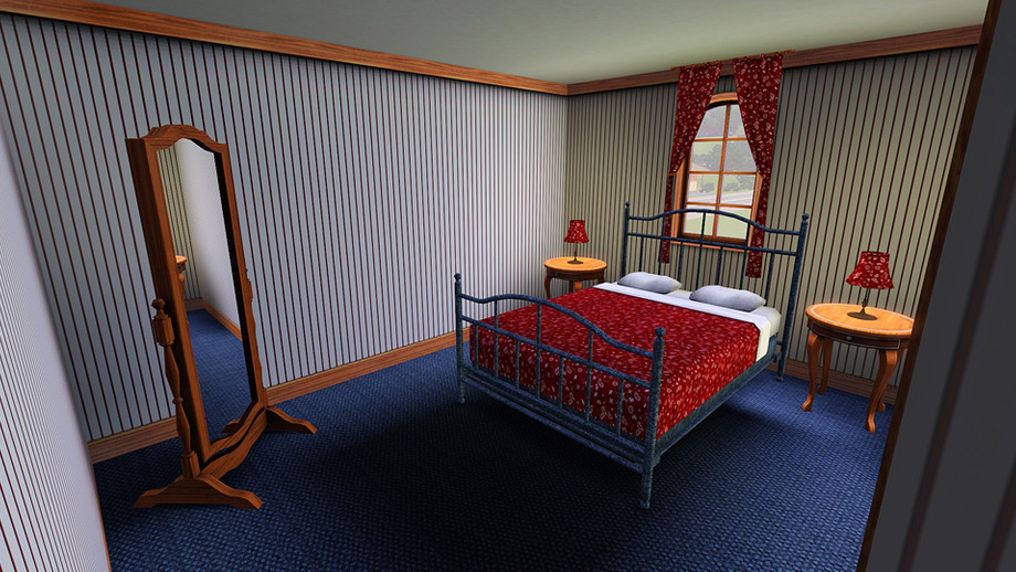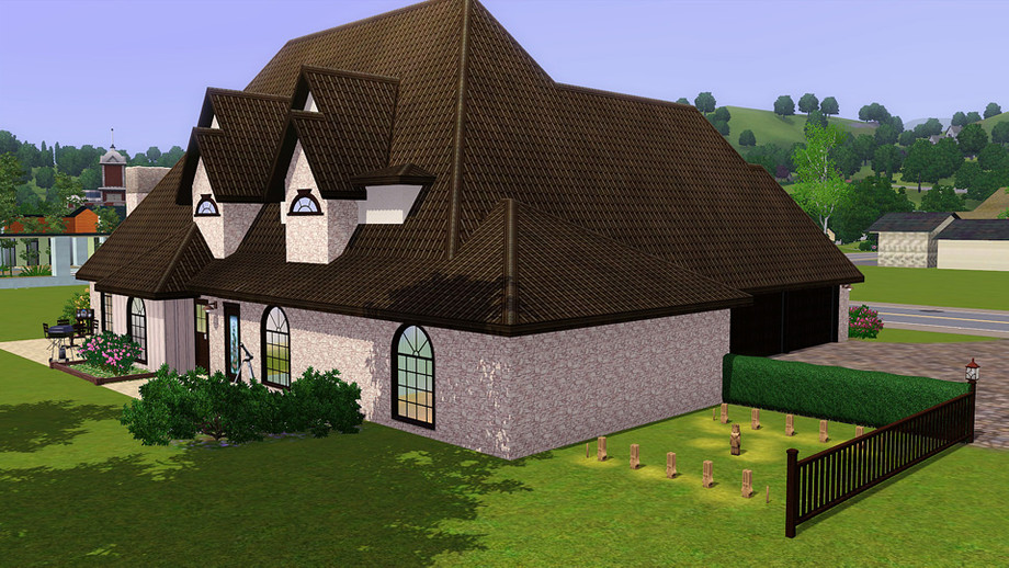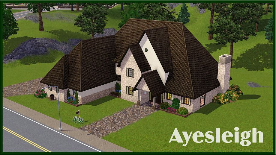 Ayesleigh is a large house with all the goodies a family needs. The master suite in the rear of the house gives a quiet reprieve for exhausted parents. A nursery, guest room with attached bath, and another bedroom with attached bath are upstairs. Medium and dark wood team up throughout the house for a rich look. There is a formal dining room and study off the foyer. A large family room sits adjacent to the kitchen. There is also a half bath downstairs for those pesky visitors to use. Sim Gnubb awaits your sims in the side yard and there's plenty of green space left for gardens, trees, etc. If there is a garage nut in the house or your sim has a collection of cars, the three-car garage should put a smile on that sim's face. Ayesleigh is considered to be Gothic Revival style and has a finished exterior of stone and masonry walls.