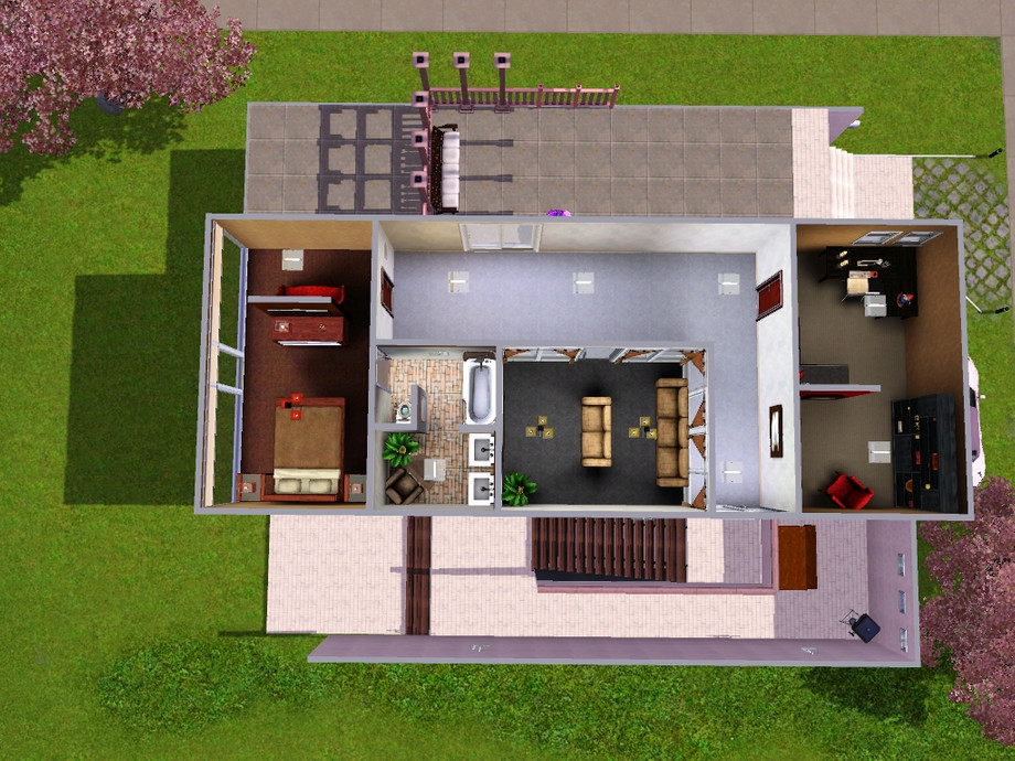 Sims who love the outdoors, and who love to cook, will also be delighted with the outdoor BBQ area just next to the function room. I had fun building it and I hope your sim will have fun staying in it :).