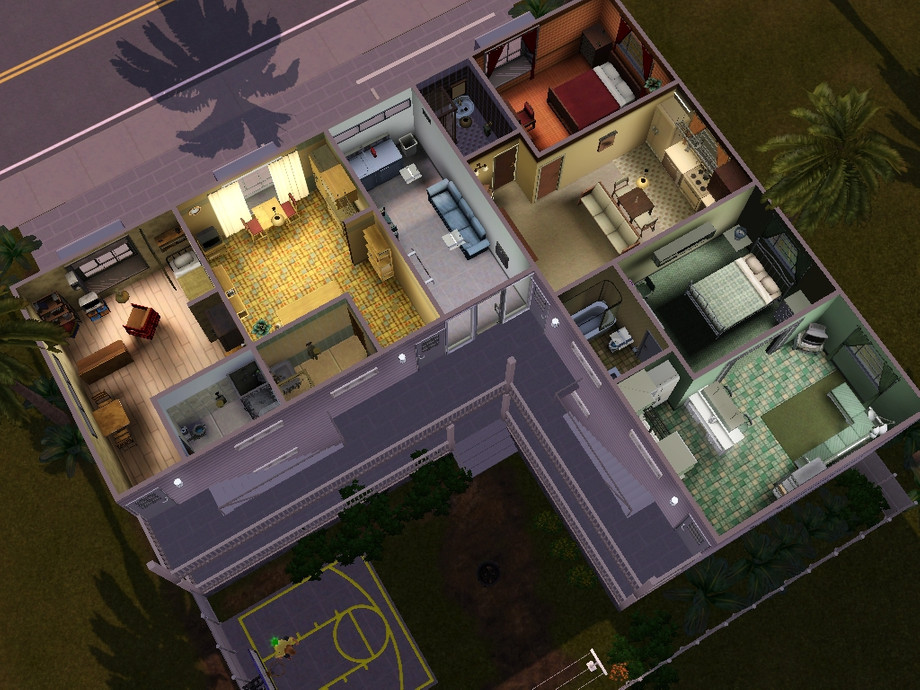 If your Sim has just graduated and still has no income, then it is quite afford to rent an apartment for $ 1400. In this house there are 8 small apartments, all decorated differently and equipped to suit every taste.