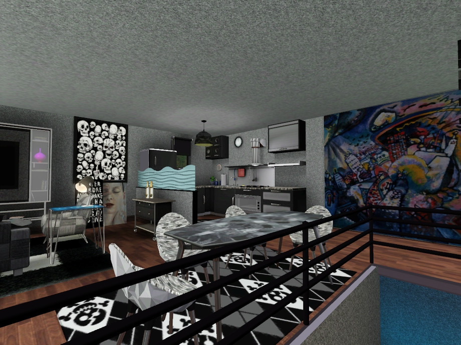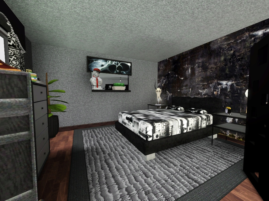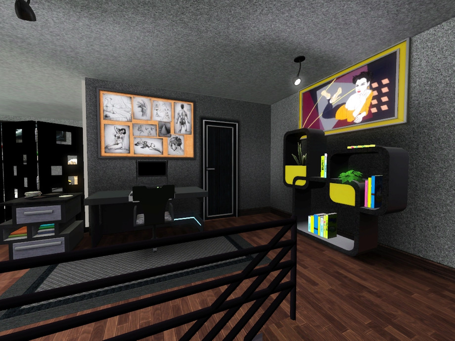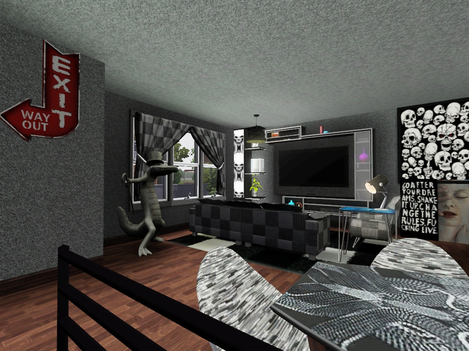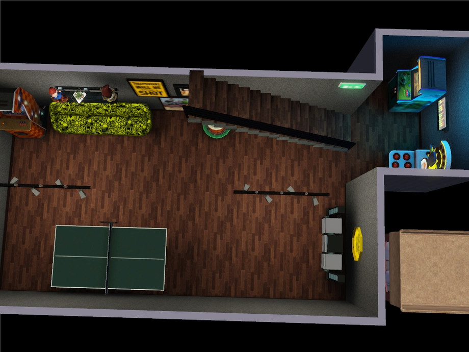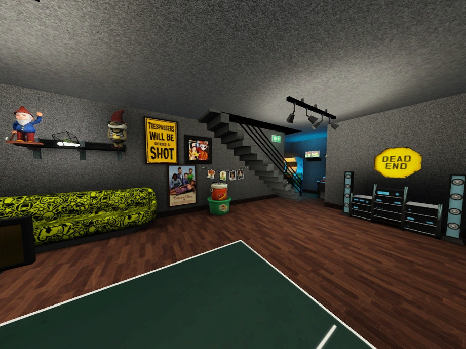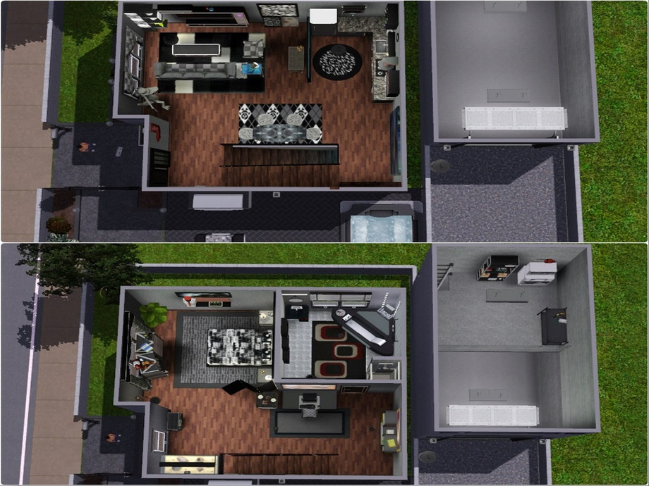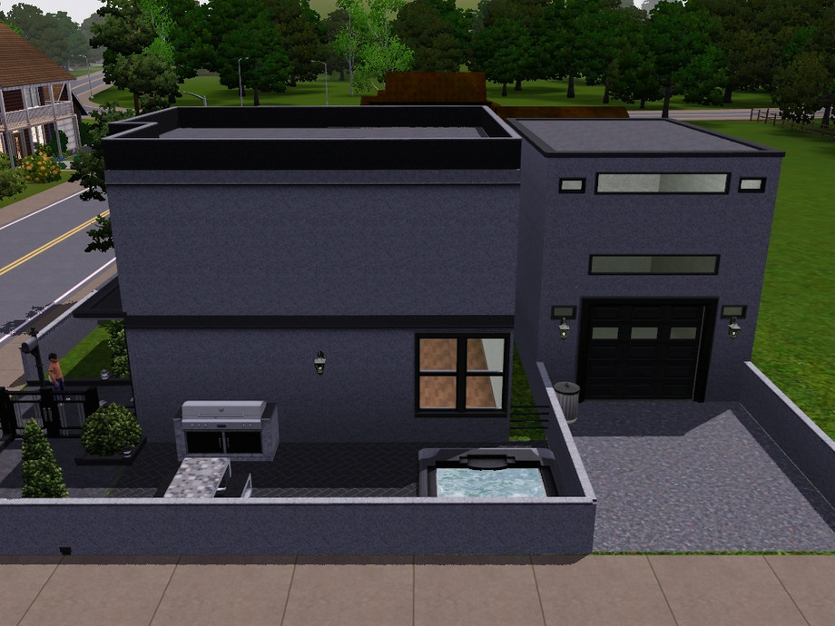 Perfect pad for your single Sim. One bedroom, one bathroom, basement, hot tub, garage with storage above.