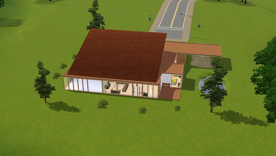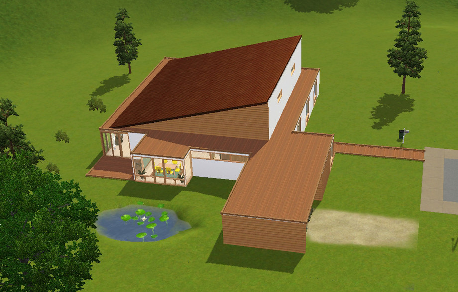 Basic lot with 4 rooms, garage for 2 cars, pond, dining room and living room not seperated. Made by littlebillie - www.thesimsresource.com/members/littlebillie
