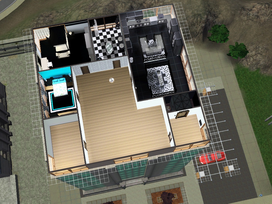 Modern 2 bedromeed apartment, with study and gym. also features a laundry room and spacious kitchin. perfect for a single sim or the perfect place for them sims just starting to raise their families!