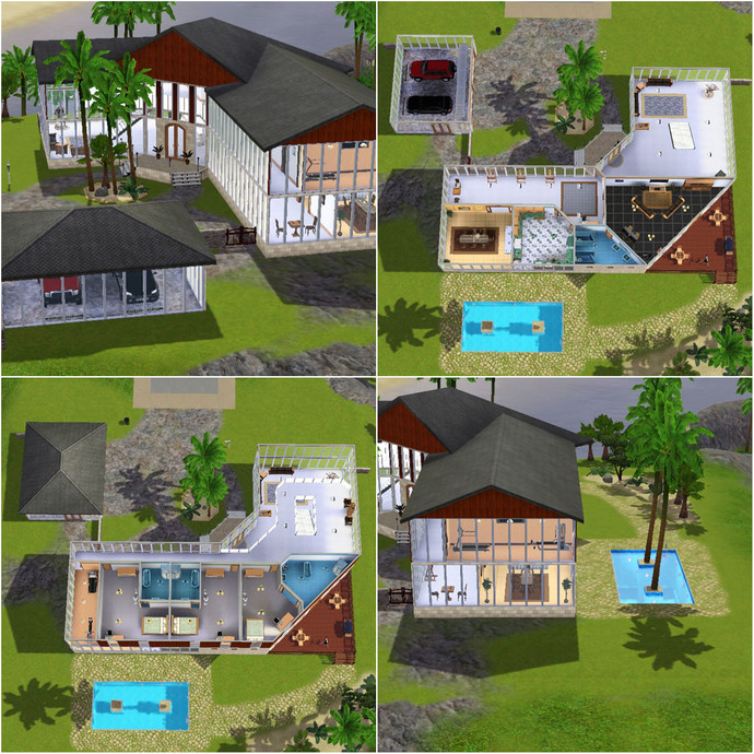 The Bayside Retreat is a spacious, modern, glass-fronted home welcoming to any sim. The 3 fully en-suite bedrooms suitable for all ages are ideal for a family doing well, or a group of friends pooling their resources. Complete with pool, gym and welcome area your sims will be hard pressed to do better than the Bayside Retreat.