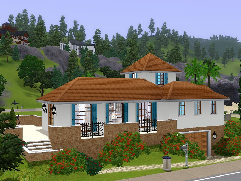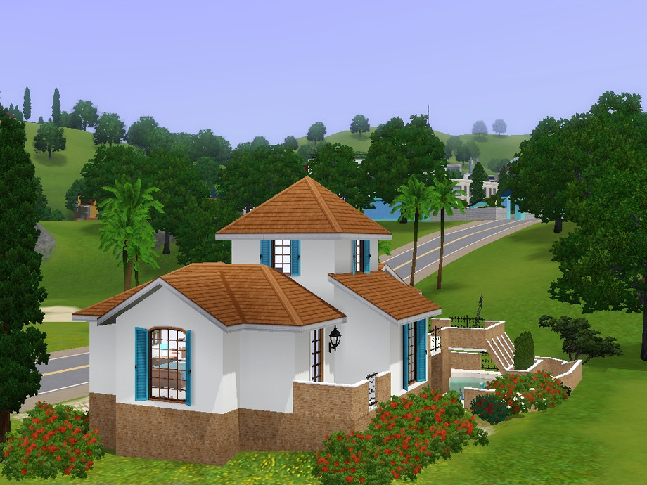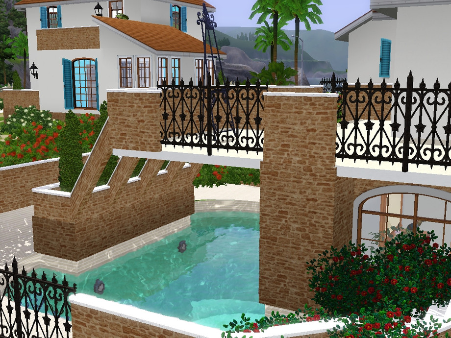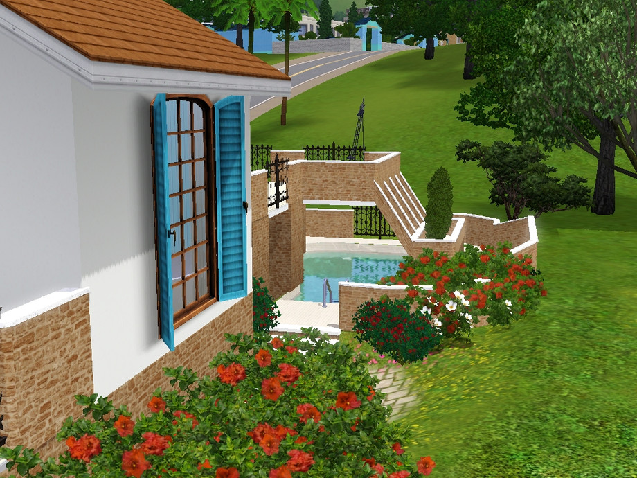 Did you see the swimming pool? It's partly covered and should garanty your sims some privacy. The house has 2 bedrooms, a large terrace and an underground garage.