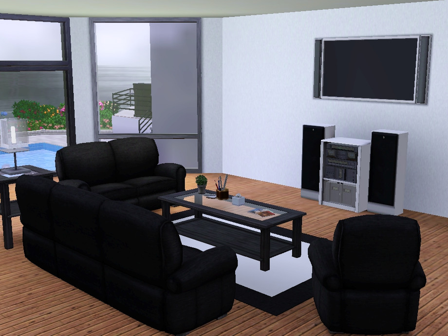 Beach Bum is a modern home with a twist of tradition dedicated to those who love the beach and want to live right next to it. The first floor contains a spacious living room, a sitting area for your Sims who love to read, a breakfast/dinner nook, a kitchen with an island, an area for your Sims who love to play video games and a half bathroom behind the stairs. The second floor contains the master bedroom with a master bathroom with his and her sinks, a second bedroom with a private bathroom and a study/den which could be transformed into another bedroom.