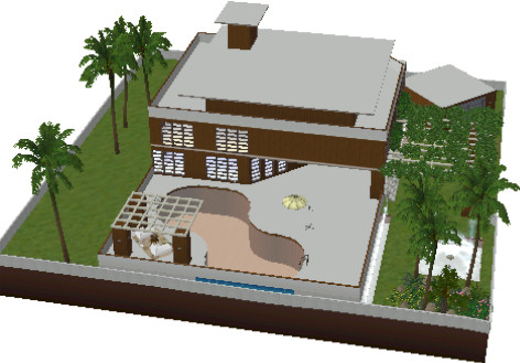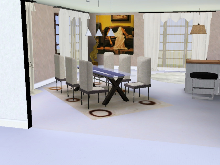 Modern beach house created for Wolff's lot. Contemporary outside appearance and modern furniture.