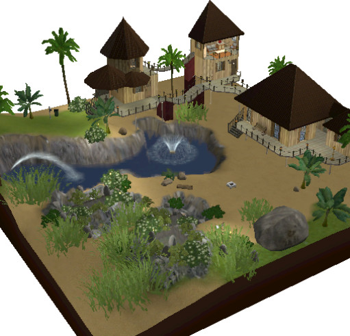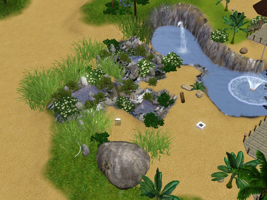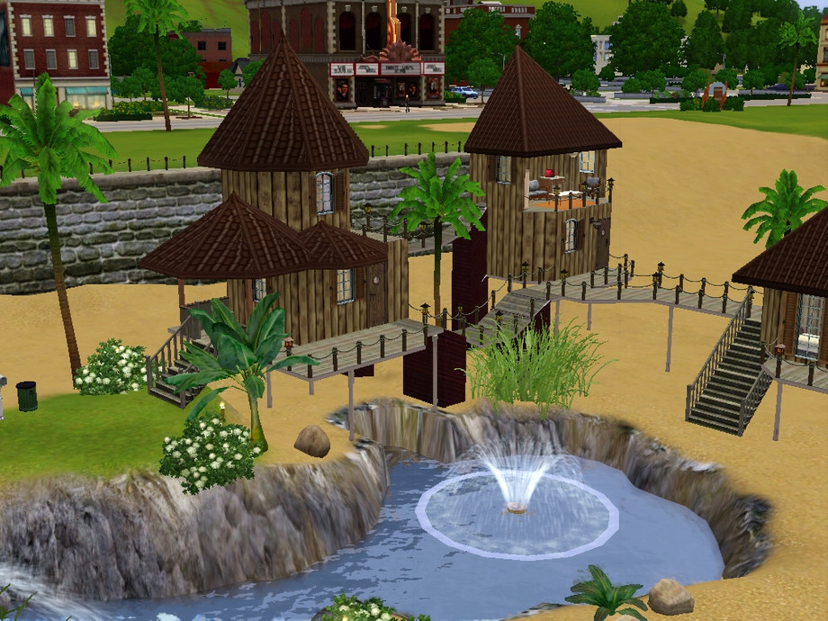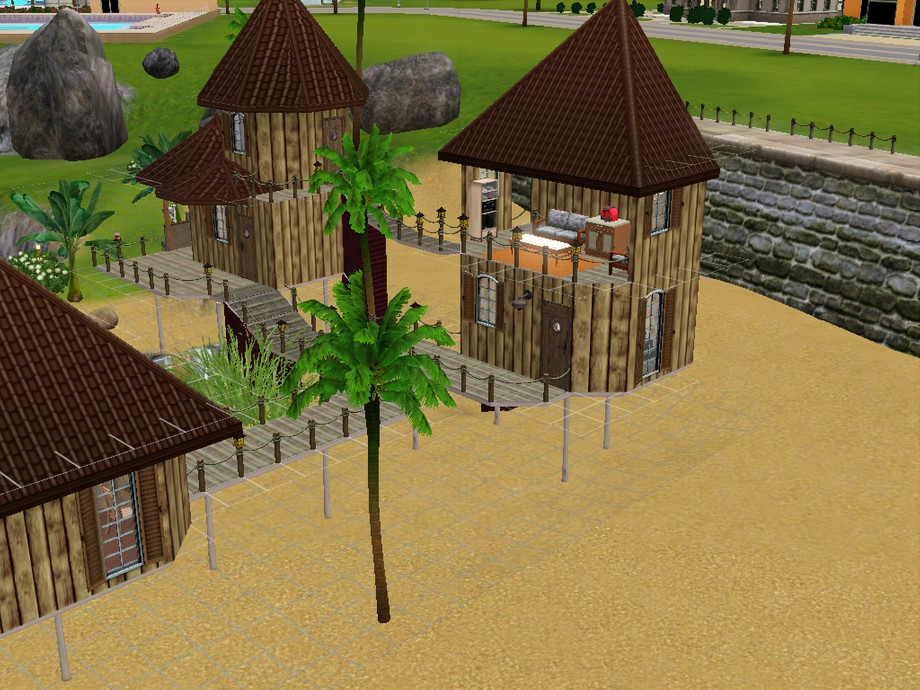 Ideal for a 40x40 lot placed on Barnacle Bay beach using edit world. Contains items from WA and Sims3 store.