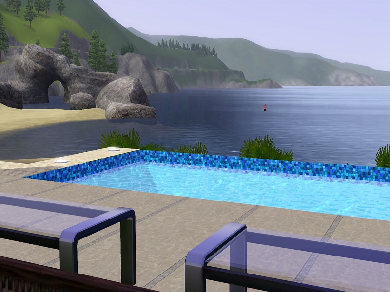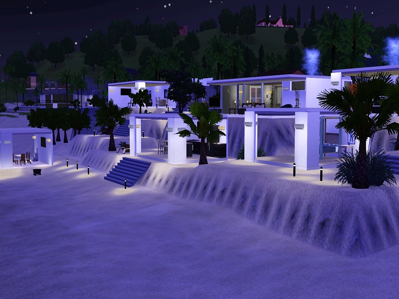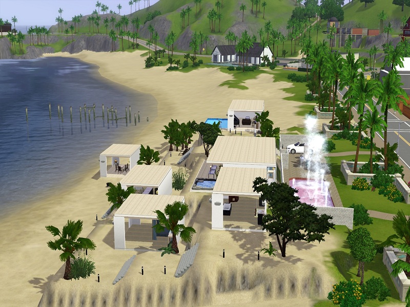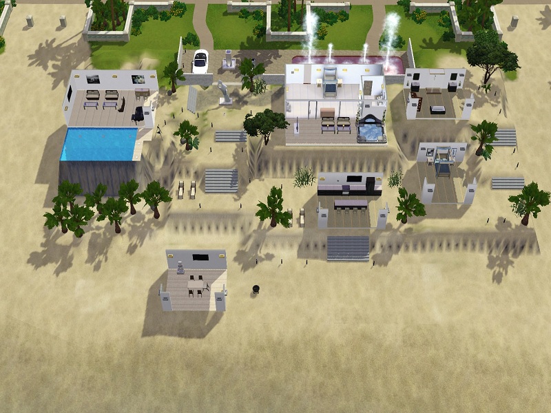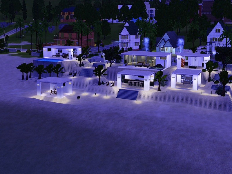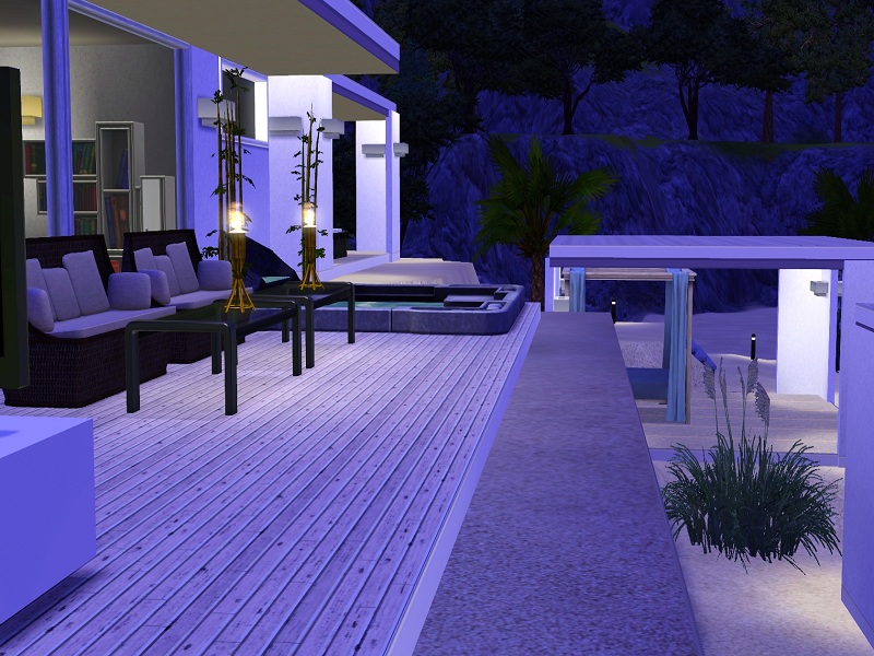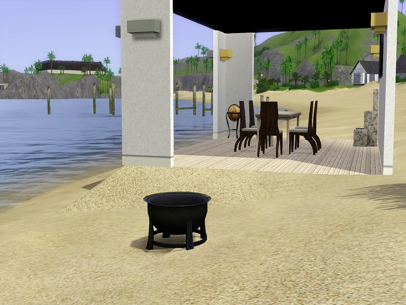Am alten Pier is an open air high end beach residence with all luxuries needed for rich Sims. It's best placed near the sea and ideal for sims close to the nature, the sun, sand and the sea. The house comes with a closed builidng containing a bed and the toilet, while the rest of the buildings are built open. From a piano to a whirlpool to a dining place direct on the beach the house offers almost everything.