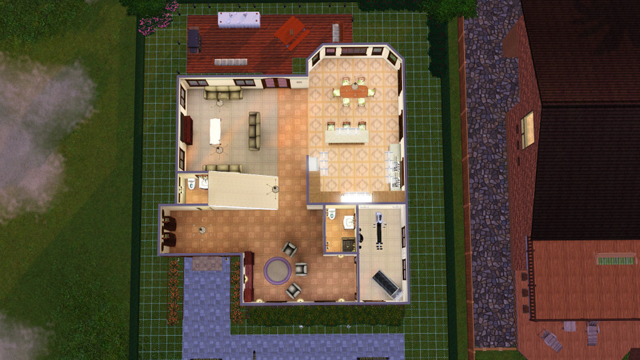 This lot was built to be across the street from the beach (9 Sun Song) in Sunset Valley but it will also fit very nicely somewhere else in the community. It has 3 bed, 3 bath and is fully furnished throughout. It also includes an exercise room, balcony on the front of the house, and a complete backyard for your Sim(s).
