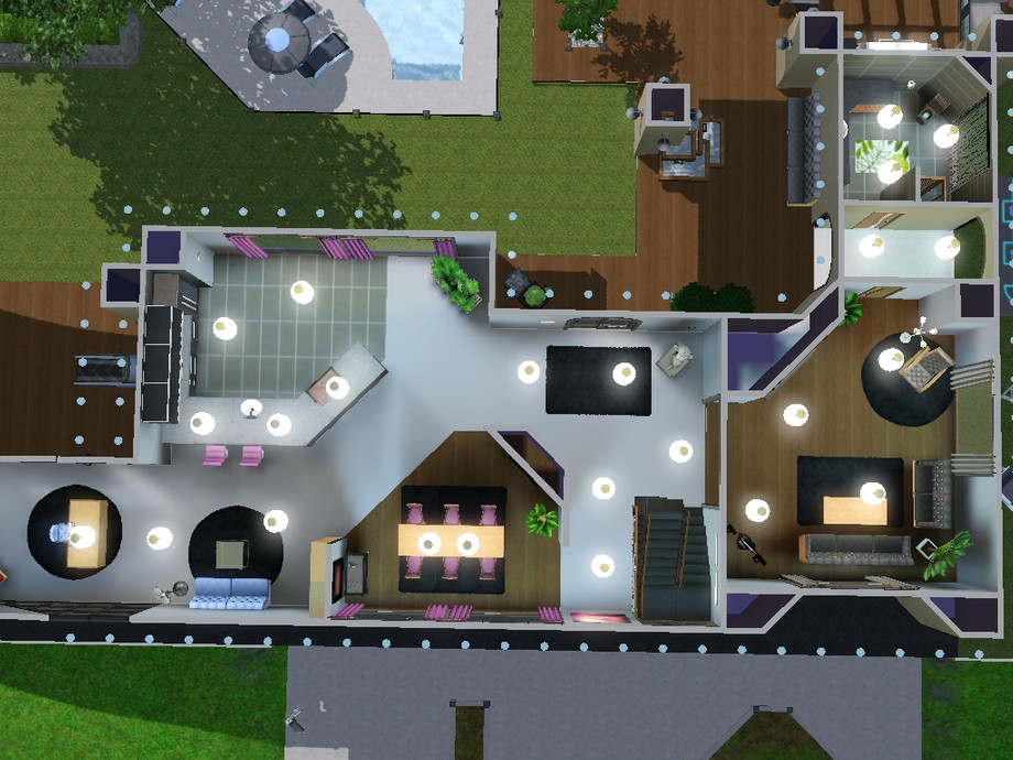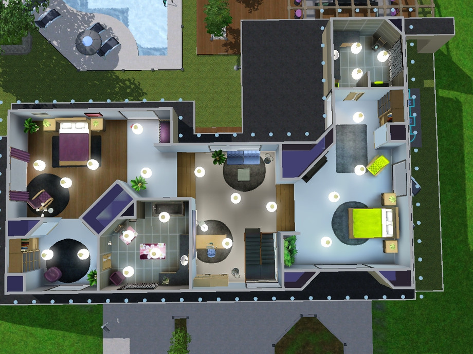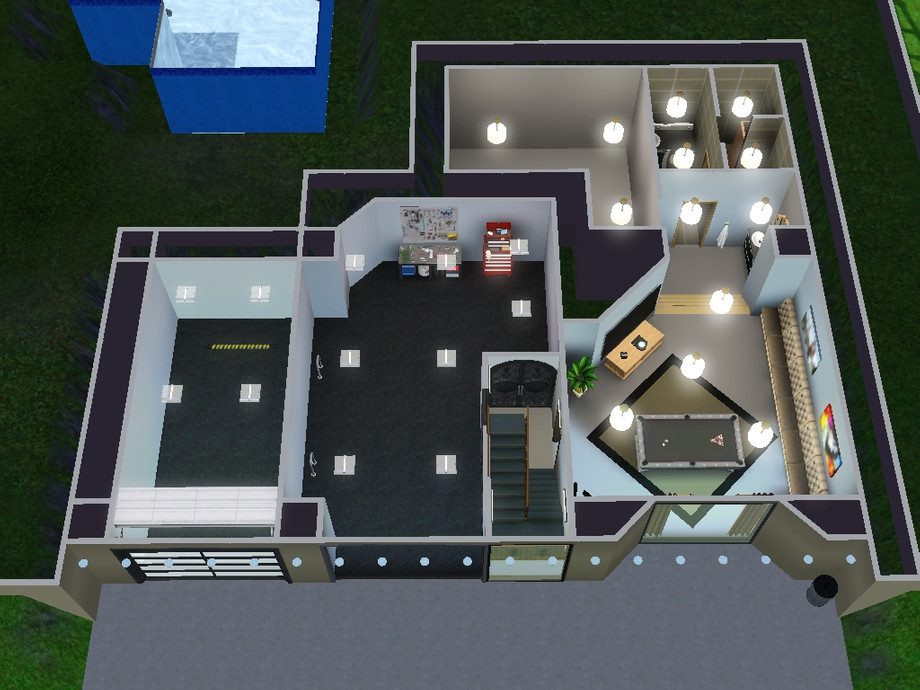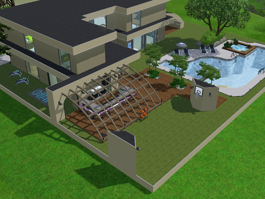 There is a room that I have not furnished. Outside there is a pool and a basketball court.
