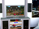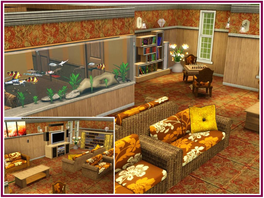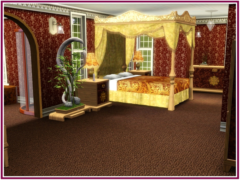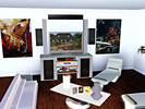 On the mid-level are the bedrooms. The master with its canopied bed and it's private, marble bathroom; a smaller double room with heirloom velvet comforter and a single room with desk and computer for study or fun. These latter two rooms share the convenience of a full bathroom. At the end of the gallery around the lifts is a large livingroom, where the focus is a massive digital aquarium - visible both from within the room and from the gallery. This room also has a TV and cushioned comfort, with a chess table available to all comers. The game room contains a football table, shuffleboard setup, and a dartboard for the eagle eyed and steady handed amongst us.