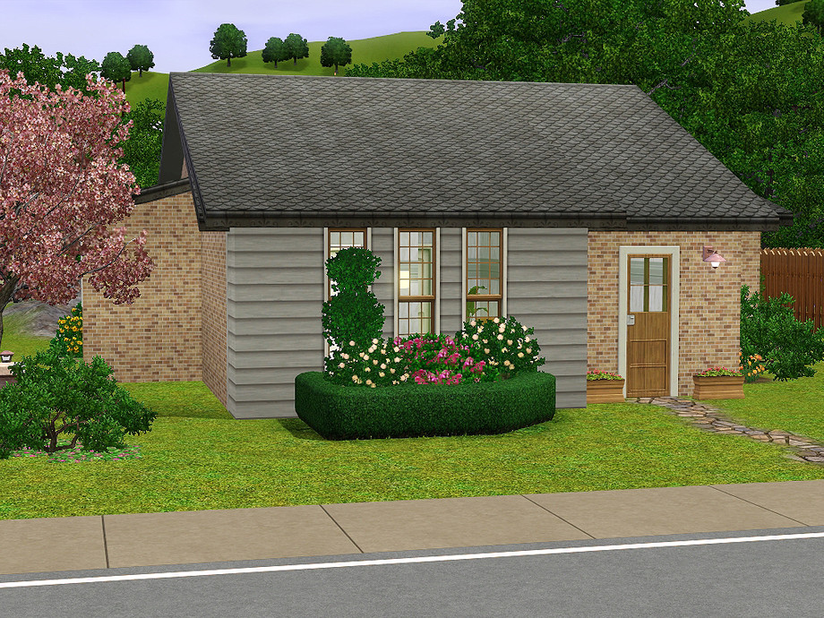 Small and cosy house for Sims which are just getting started their life together. Includes 2 bedrooms, bathroom, kitchen, livingroom and already landscaped garden. Easy to expand. Enjoy :)!