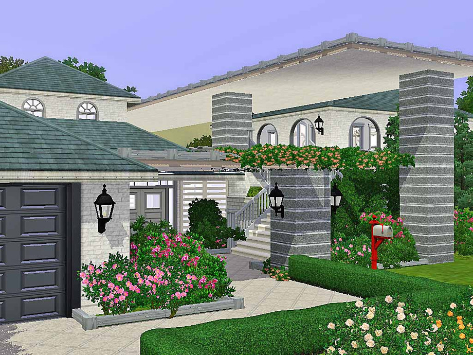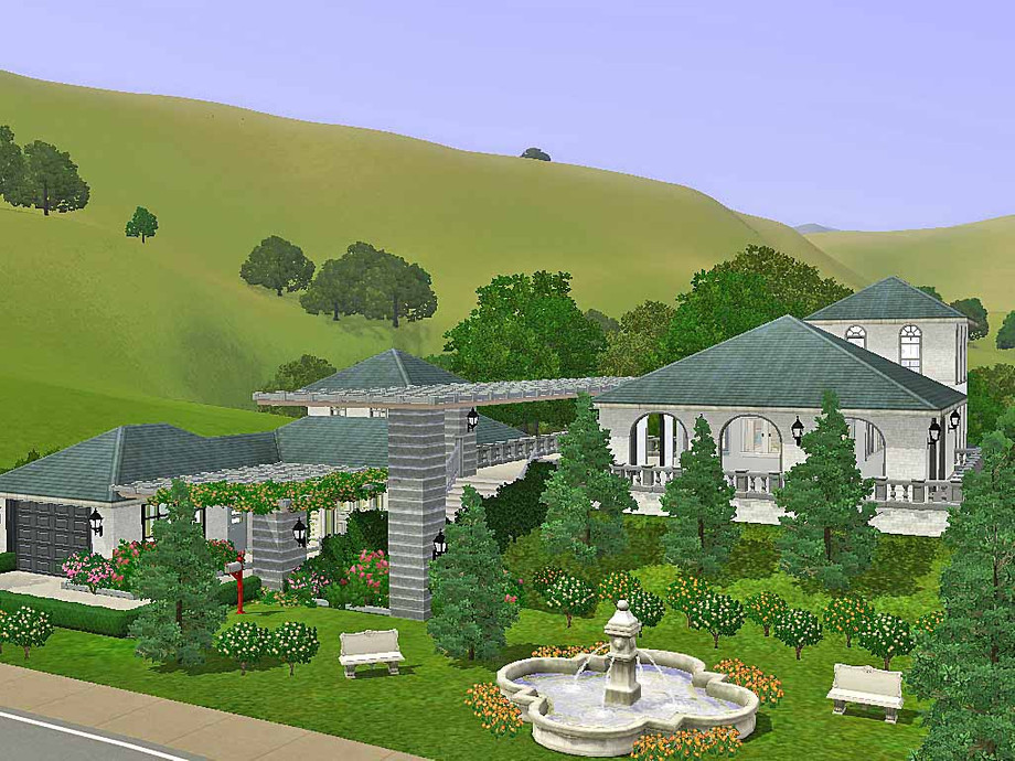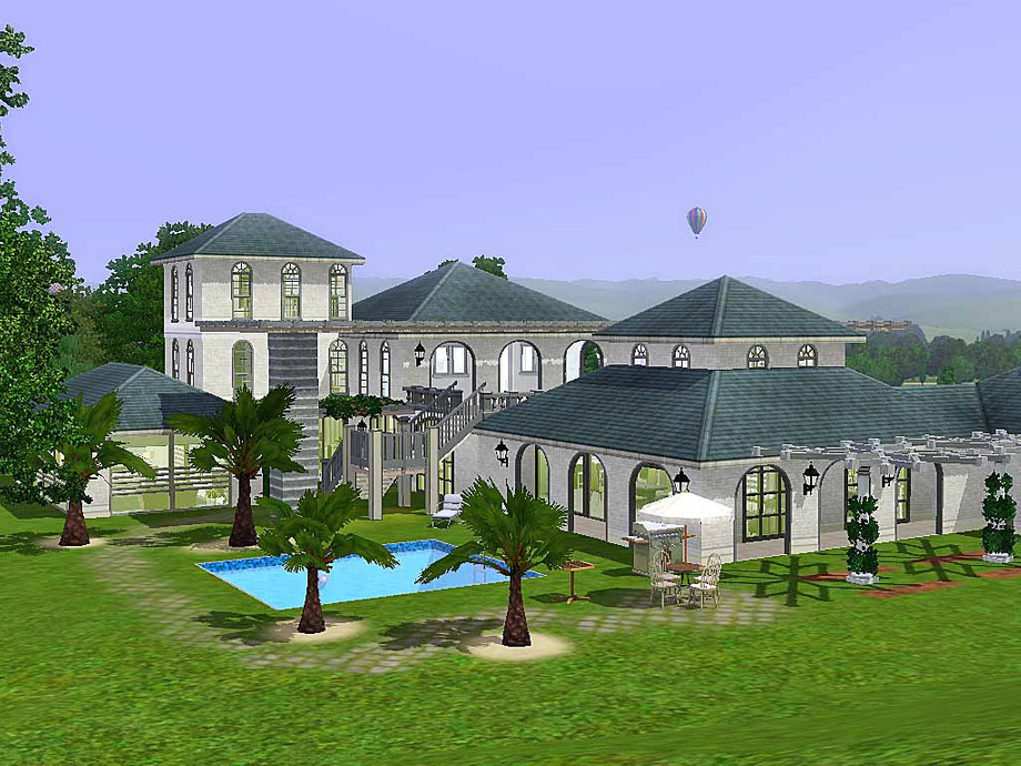 We built this Colonial Summer House to provide the sims a cool and comfortable environment. Covered porch, high tower room, large balcony, covered stairs, pool, fountian, trees, cool colour scheme, etc., all our design considerations is to keep your sims cool. Though the house has a classic exterior look, the interior design is modern and comfortable.