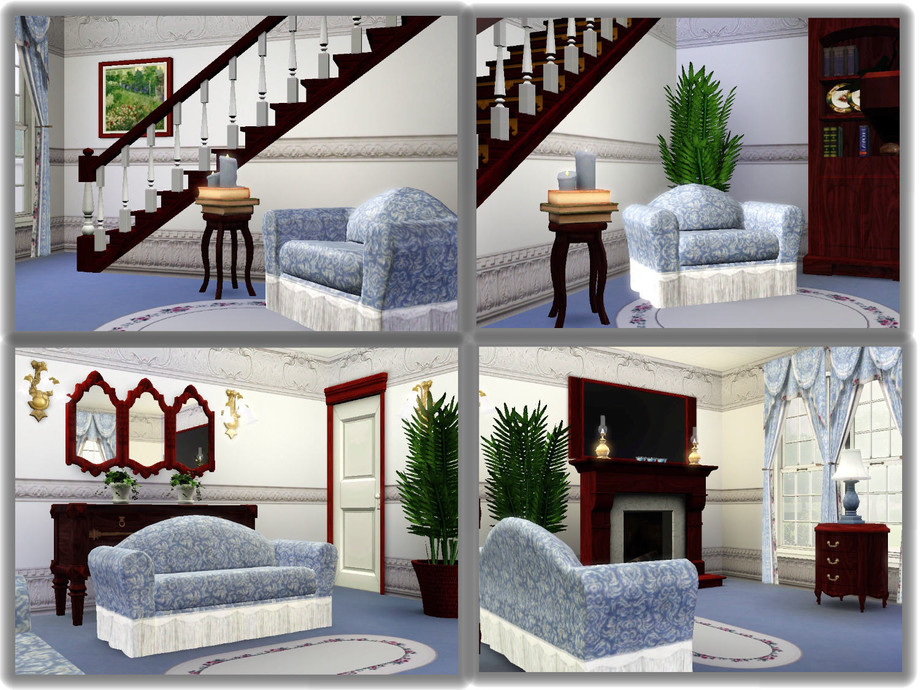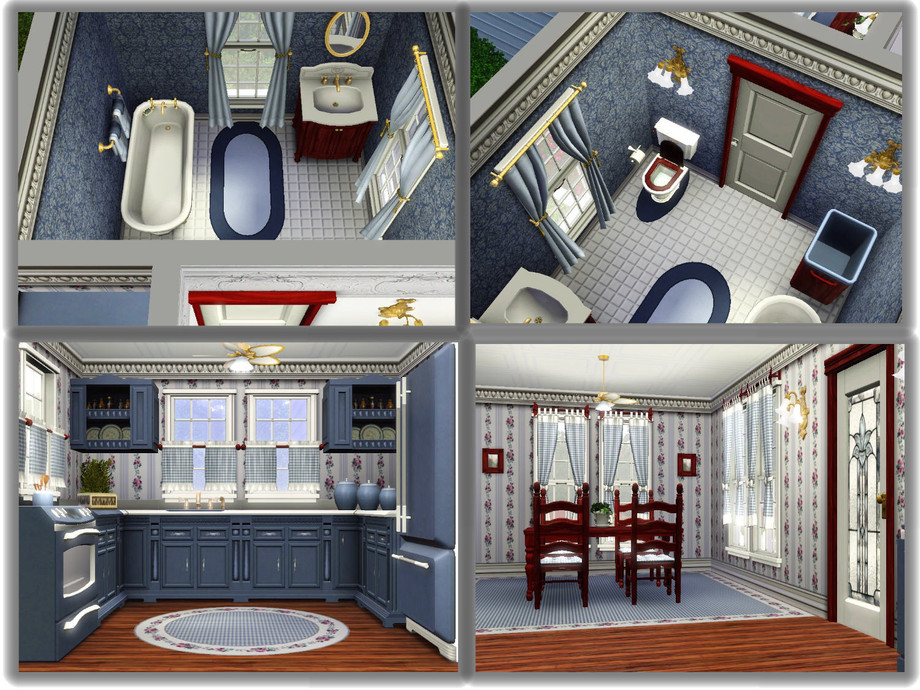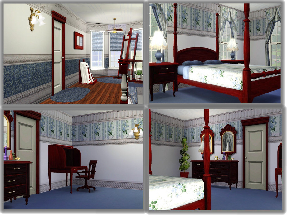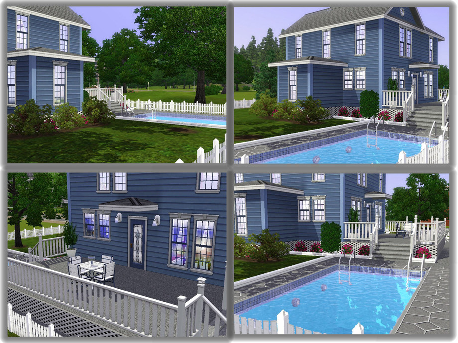 This sweet little Victorian home brings charm to any neighborhood with its country blue exterior and white pickett fence. It is the dream of every Sim female thinking of a home in her future. Built for the smaller lots, this house is afforable, and you can make your young Sim's dream come true. This home has a single car driveway and a pool in the back yard with plenty of dining out space. The interior is done in the country blue, shades of rose and white decor. The downstairs has a living/media room with a fireplace, an eat-in kitchen and a full bath. The upstairs has an art nook near the bay window of the hall foyer. There is a master bedroom with adjacent bath. There is a computer nook for the bedroom. This lovely home was built at 378 Skyborought Blvd. in Sunset Valley. Enjoy!