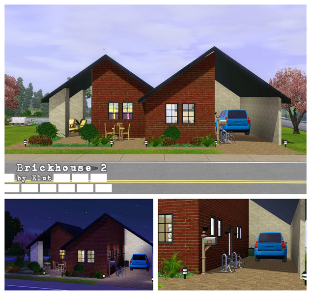 Yet another brickhouse. This time with a interesting design of the garage. The house has 2 bedrooms, one is a nursery, a bath room and a combined kitchen and living room. The backyard is made ready for a veggie garden and the front yard has a small zen corner. Enjoy. Elut TSR