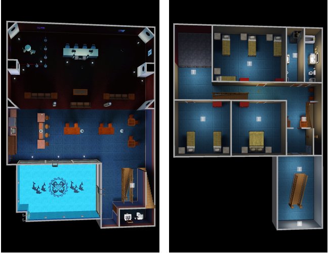 Basements 2 through 4 comprise the alien bridgehead, with (stylized) off world tech reactor, teleportation gate, and supercomputer in air conditioned glass room. This bunker area has a furnished barracks for 8, with 2 baths, kitchen, and laundry, for the occupying force to use while monitoring earth.