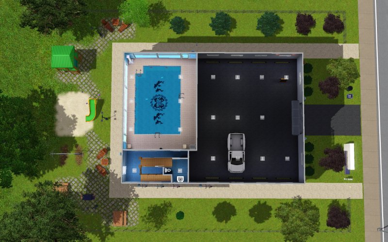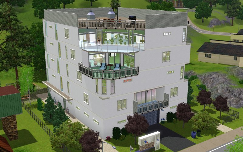 by Alan_of_Dale -- 5 story apartments on 30x40 lot with indoor 8 car lot, and pool with windows to basement bar/disco. Features alien 3 floor basement earth monitoring station.