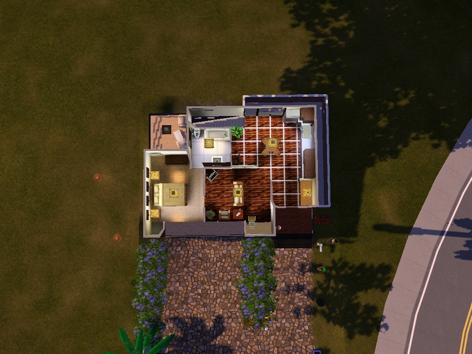 This little house is quaintly settled by the sea wall. You only need the base game for this! I thought I did pretty good as far as making it. The custom content is only the palm tree there. Don't worry ;)