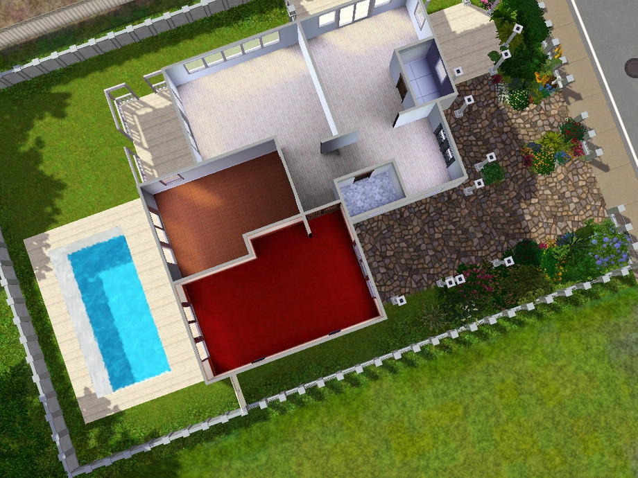A cute little house perfect for anyone. The house includes a living room, a kitchen and a pool.