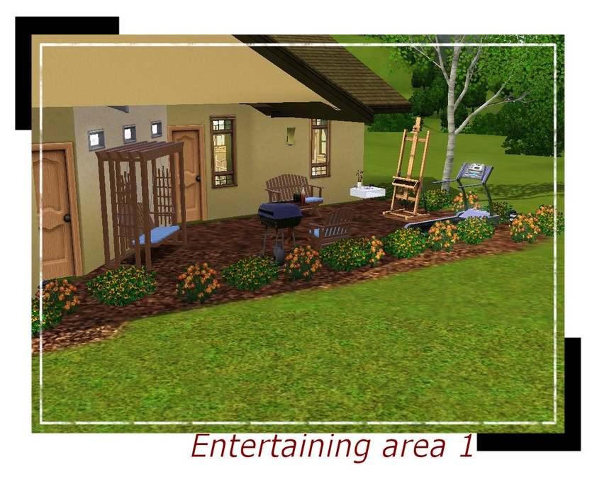 Outside features 2 entertaining areas, one with treadmill, easel,
