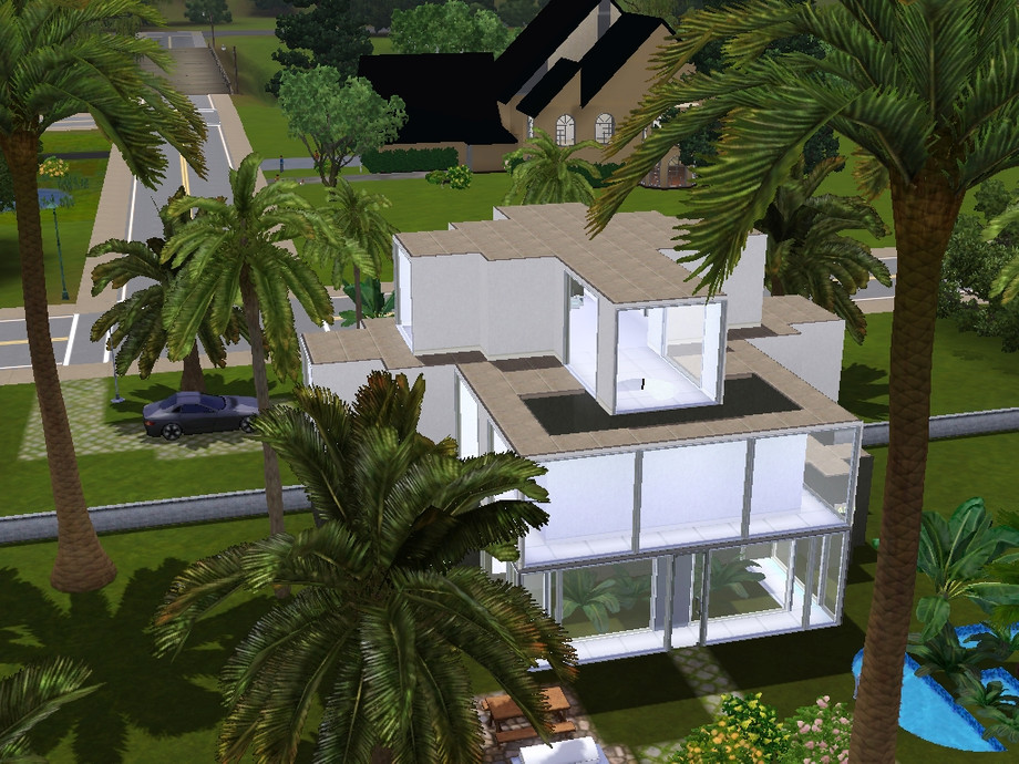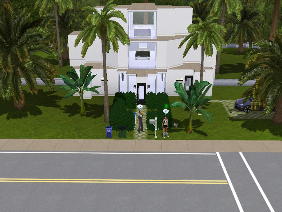 This beautiful White House features 2 bedrooms, 3 bathrooms, and a beautiful living space in the center of the first floor. This 3 story house house has a big yard both in the front and back. It has a unique shaped pool and many palm trees for a more tropical look.