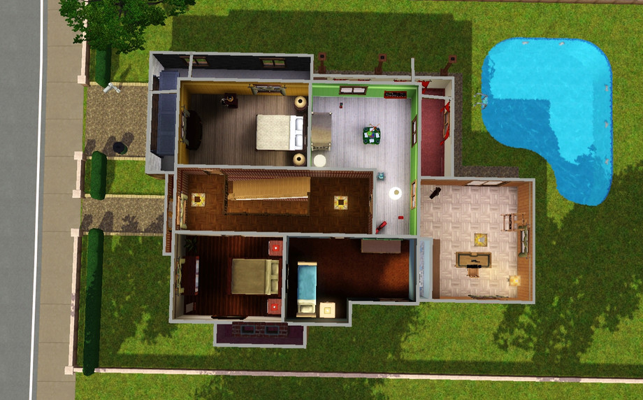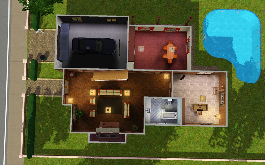 This mountain style home is perfect for Sims who love nature and prefer the peace of the countryside.