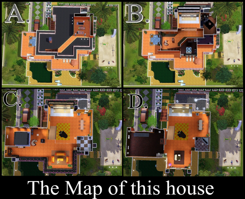 This is unordinary house for me bcause i never use this color before. I just try to new color and the result is not too bad. It has one prime bed room for the parent and one more for your sim's children, nice kitchen room cause you can see it from the next floor. Well, see my screenshot for details. I hope you have installed High End Living Stuff and Generations to own this lot wholy. Thank you.