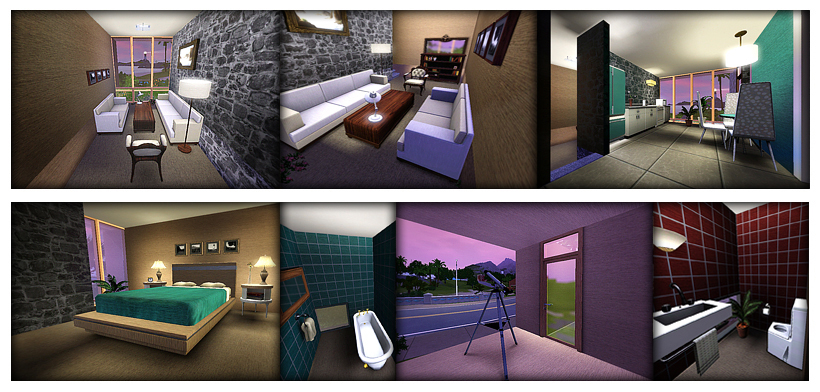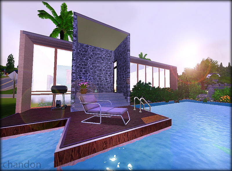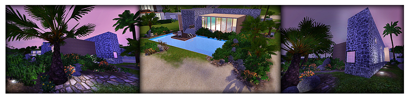Contemporary, charming, attractive and eye-catching. This villa gives absolute calmness for everyone. Cosy rooms and thought-out interior - all thats needed for stressful and disaffected sims. By purchasing this estate your sim will get relaxation in swimingpool or even sea. Located in town's suburb it's nice to live in. Villa includes 1 bedroom, bathroom, livingroom, kitchen + dining area, guest toilet and terrace. It's surrounded with tenacious shrubs, flowers and palm trees, so it's ecological too. :)
