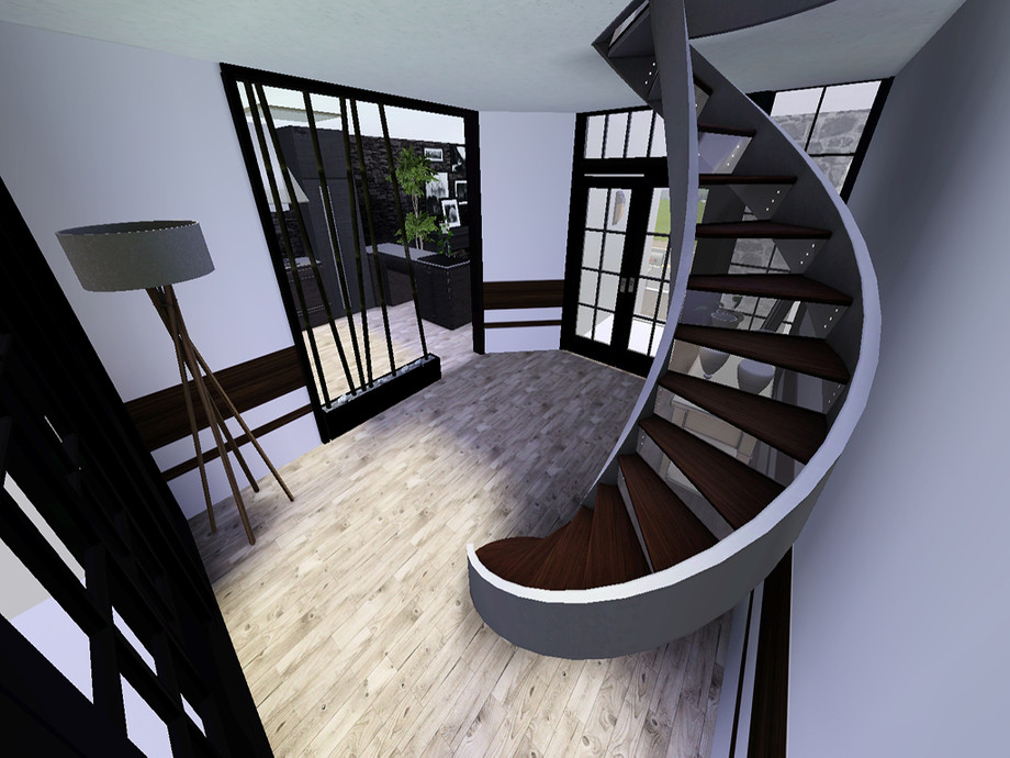 This is a modern house with a little bit of colour splatter everywhere. It has big windows for a lot of light and soothing, warm colours to wrap you up in a cozy hug, making you feel at ease and home. It offers so much for being on a small plot. It is a family home, through and through. One bedroom is left empty for a nursery/childroom.