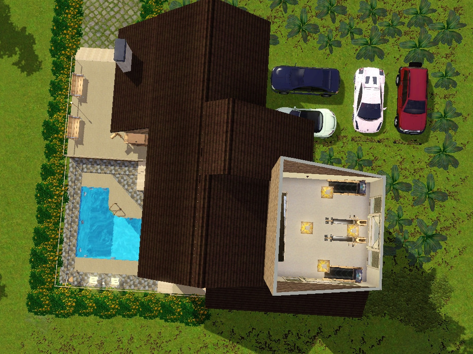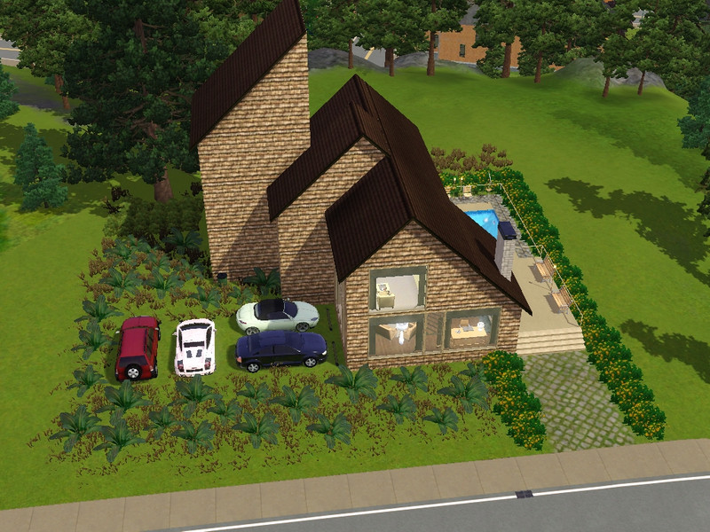 Required: Only the Sims 3 base game. No expansion packs/stuff packs are required. I believe the only CC I have used in this house is two of the cars on the lot. Cheat used: 'moveobjects on'.