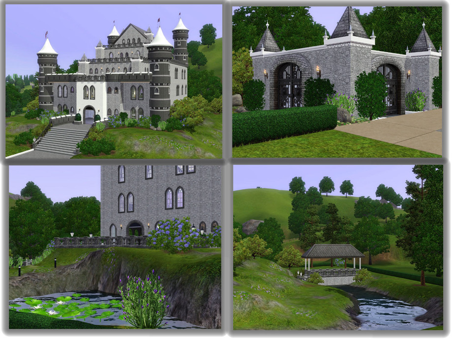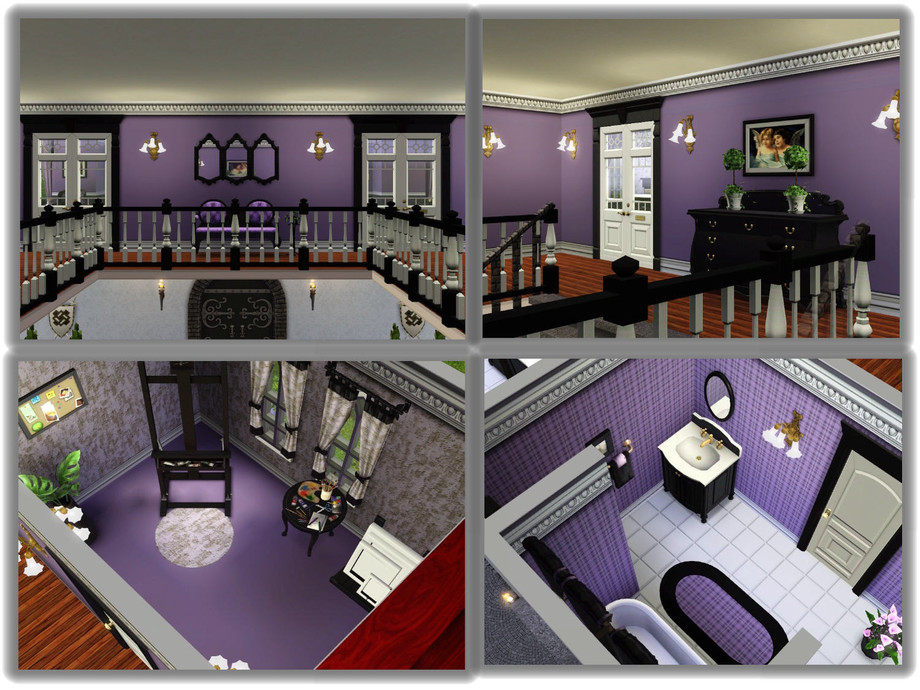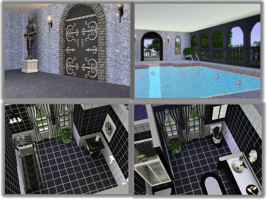 This dark formidable castle will be perfect for your "black knights" of the neighborhood. All visitors to the castle must enter into the guard house for permission to visit the castle. The castle is protected by a moat and a private entrance from those unwanted visitors. The locked entrance leads into a private courtyard, which has a full bath on the left side and an exercise room on the right side. There are stone stairs going up to the second floor. Leading out from the courtyard is a pool area. There are two outside patios for dining. The upstairs interior is decorated in lilac and black and has a full bath, an art room, a formal living room for TV, reading and listening to music, a large kitchen with a prep island and a formal dining room. The third floor has a master bedroom suite with a luxurious bathroom. There is a desk area for their computer needs. The second bedroom is a guest bedroom with bath. The fourth floor has another master suite with an office nook and large bathroom. This floor has been left unfurnished. It leads out to the top floor of the castle where one can view the beauty of the neighborhood or do a little star gazing at night. Enjoy!