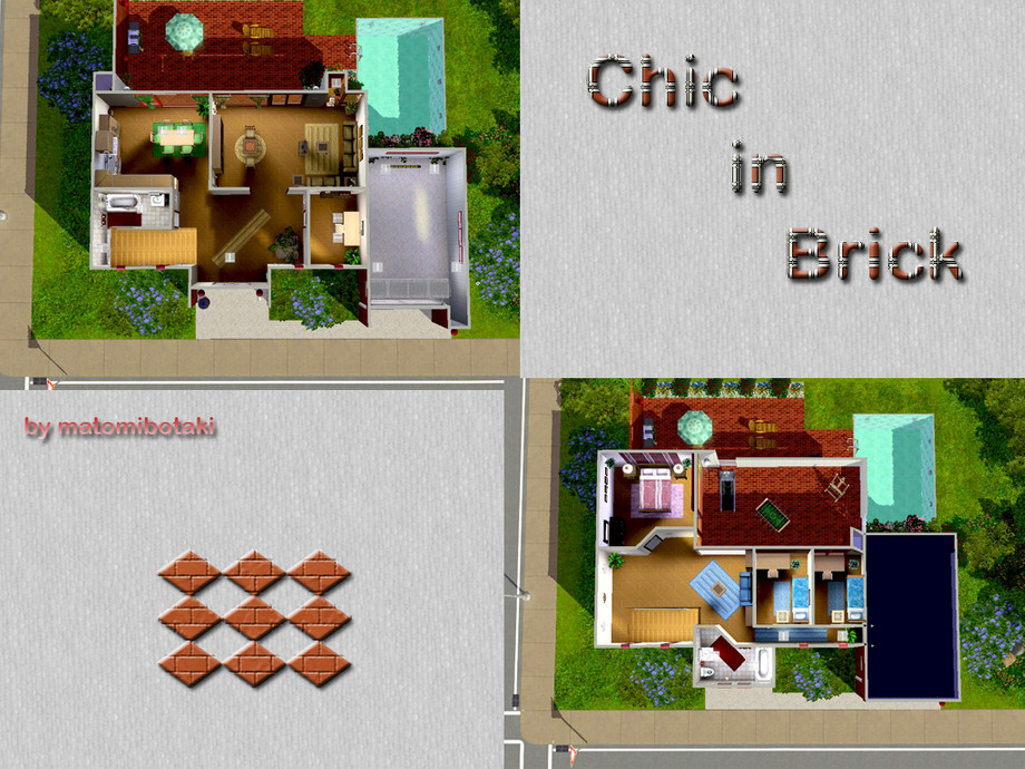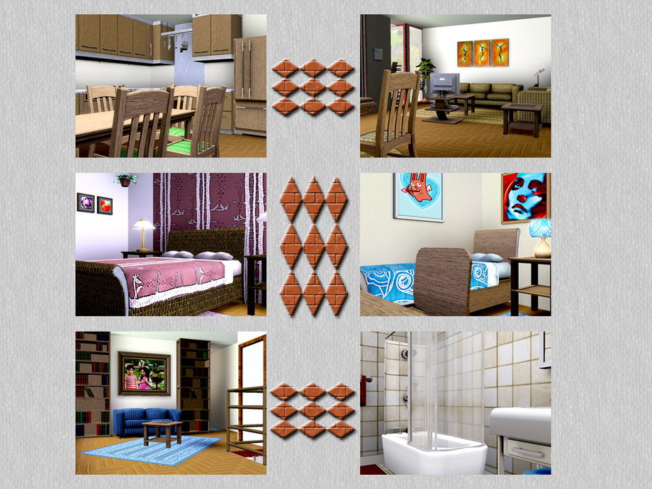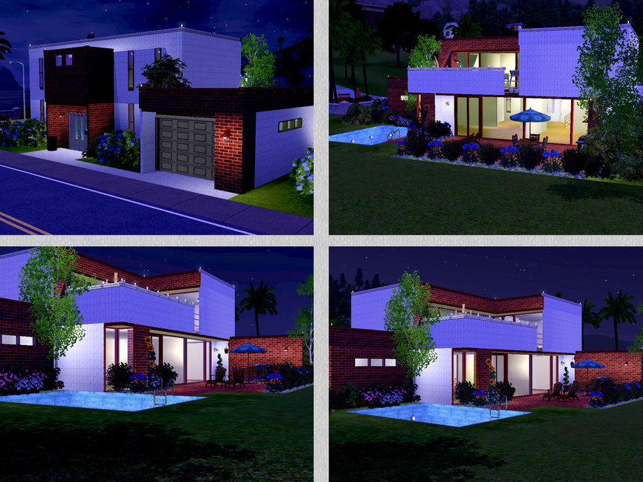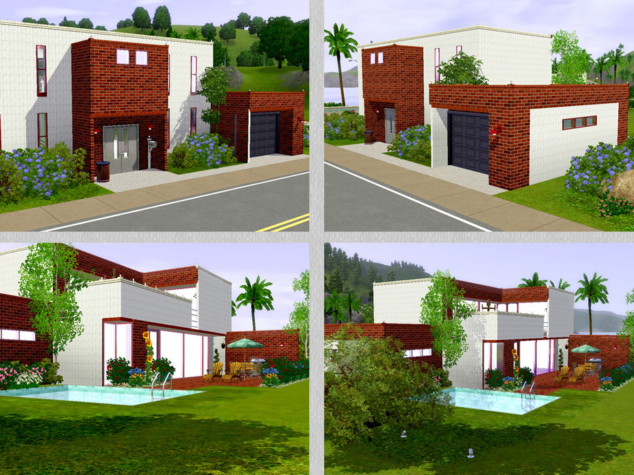A wonderful modern family home with all what your sims are looking for. Stylish entrance and hall, kitchen with dinning-area, livingroom with chess-corner, 1 bathroom, upstairs 3 bedrooms, hall with reading-corner, 1 bathroom, large balcony for all your hobbies, outside terrace, pool, lovely garden and garage. Fully furnished and decorated. Enjoy