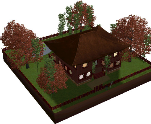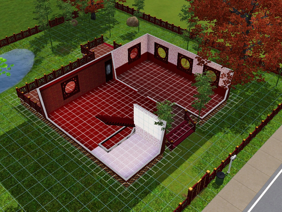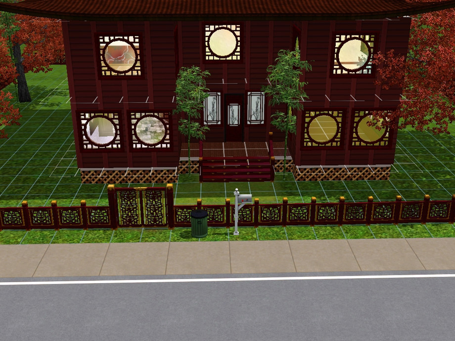 it is a china inspired home, whit a garden and a littel pond.