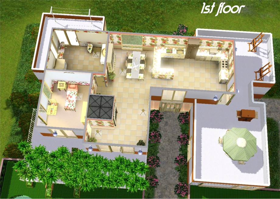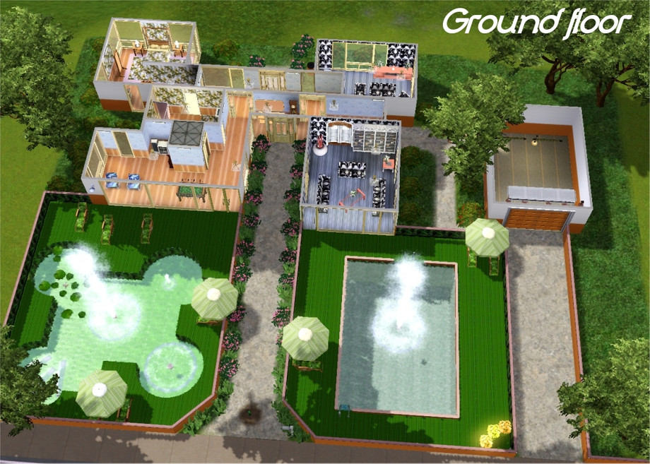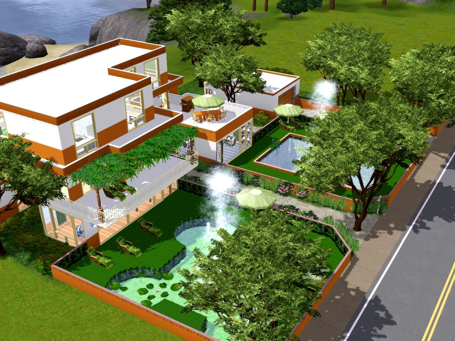 Note that I removed some trees for the main preview image. Refer to the second style shot for the full effect. Built on the 40x40 lot at 130 Redwood Pkwy. Suitable for any flat 40x40 lot. Do not re-upload.
