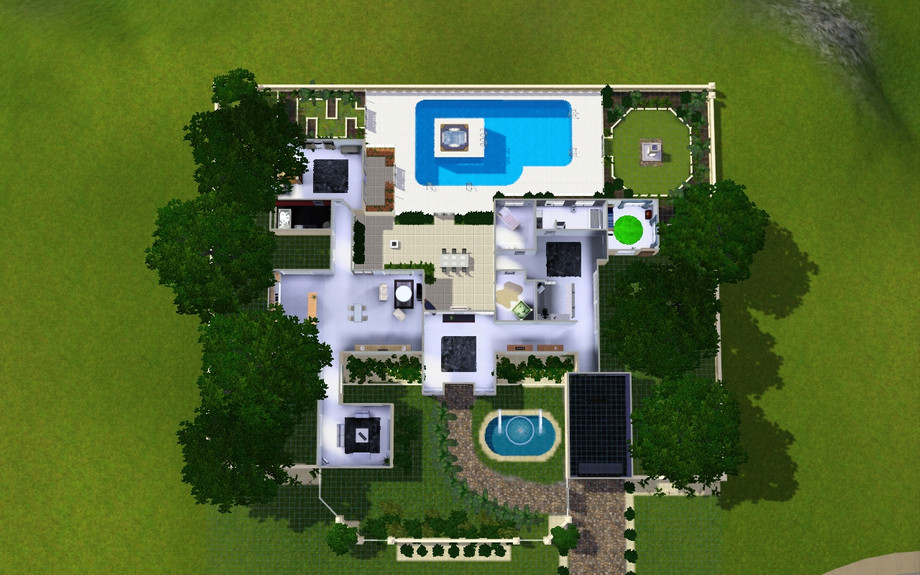 This house is a full of character, a house where your family can sit back and relax in classic style. Classic Modern is fully furnished with custom content suitable to anyone. 4 spacious bedrooms, 2 glamours bathrooms, a theater lounge, 2 exotic gardens, A paradise pool (Includes spa). a garage connected to the house - no hassle after a sims hard day of work; Overall it is a spacious family living home. Furnished: 170,088 Unfurnished: 126,910