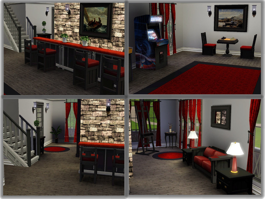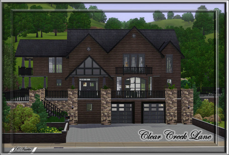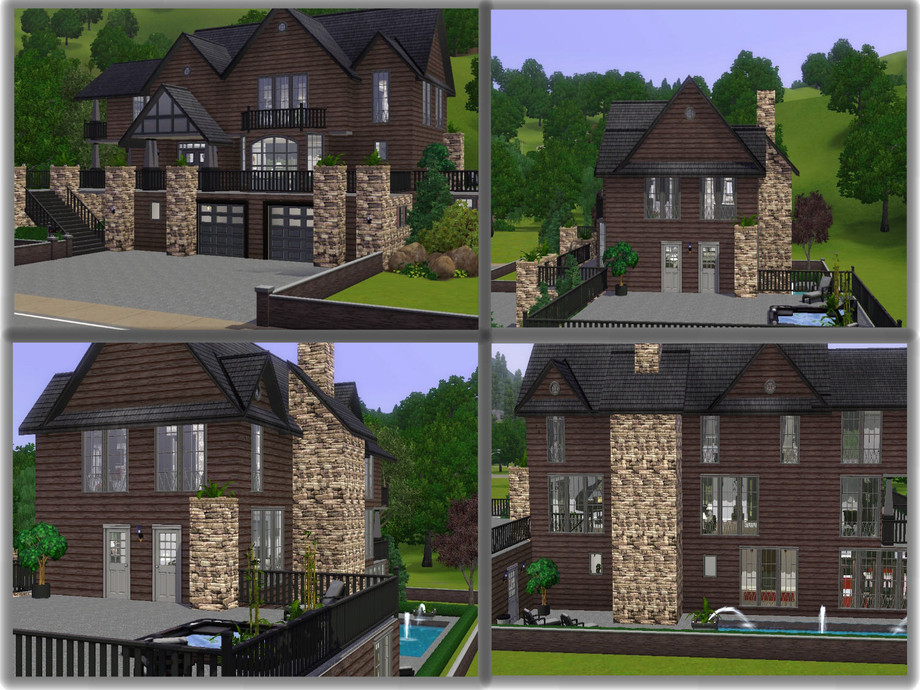 This rustic styled home was made for the party Sim in your game. With plenty of room for those late night parties, this home offers something of interest to each of your guest. They can hang out at the hot tub or down at the bar in the spacious game room. There will be plenty of room for parking with the three car garage and large parking area. Entrance to the home starts on the second floor where your Sims will enter into a spacious living area with a cozy fireplace, plenty of seating and a grand piano for the musically inclined. There is also a picturesque window with seating for reading. Stairs lead down to the ground floor where there is a lovely recreational room with a long bar, game machines, chess and an art area. There is also a full bath, a laundry room, a guest bedroom, an eat-in kitchen and a butler's pantry with a breakfast bar on the ground floor. The backdoor entrance leads out to a side patio where there is a lovely lap pool with fountains. The third floor has the master bedroom and bath on it. There is another cozy fireplace with seating and an office nook for those computer and reading needs. The master bed has a soaking tub and a private shower. This home was built at 26 Sims Lane in Sunset Valley. Enjoy!