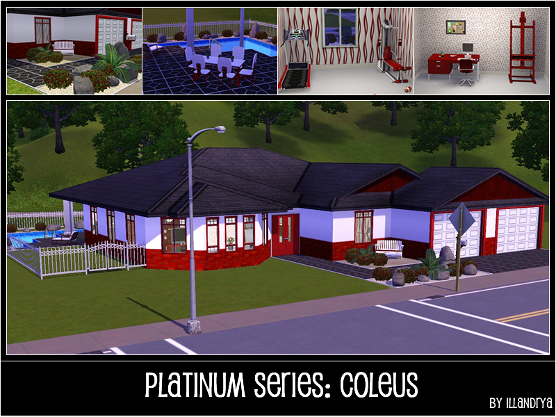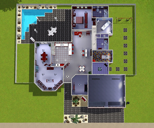 A modern, single-storey home for the modern Sim family. This generously sized house has plenty of room to eat, sleep and play. A home gym and designer pool are just a few of its enticing features.