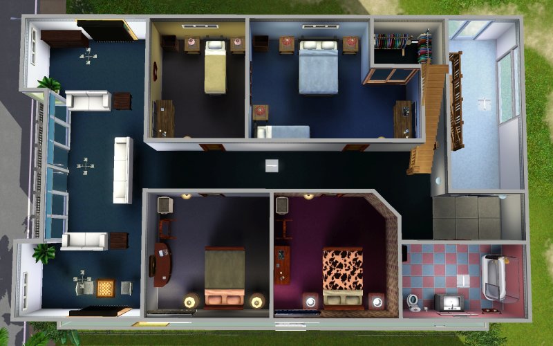 The building was also tested on the 20x30 lot at 451 Riverview Rd in the Riverview world, and at 9 Sun Song Ave, Sunset Valley (which costs 1500 more due to the beach lot price). Built with game version 1.12.70/2.0.86/3.0.38/4.0.87. No Custom Content was used.