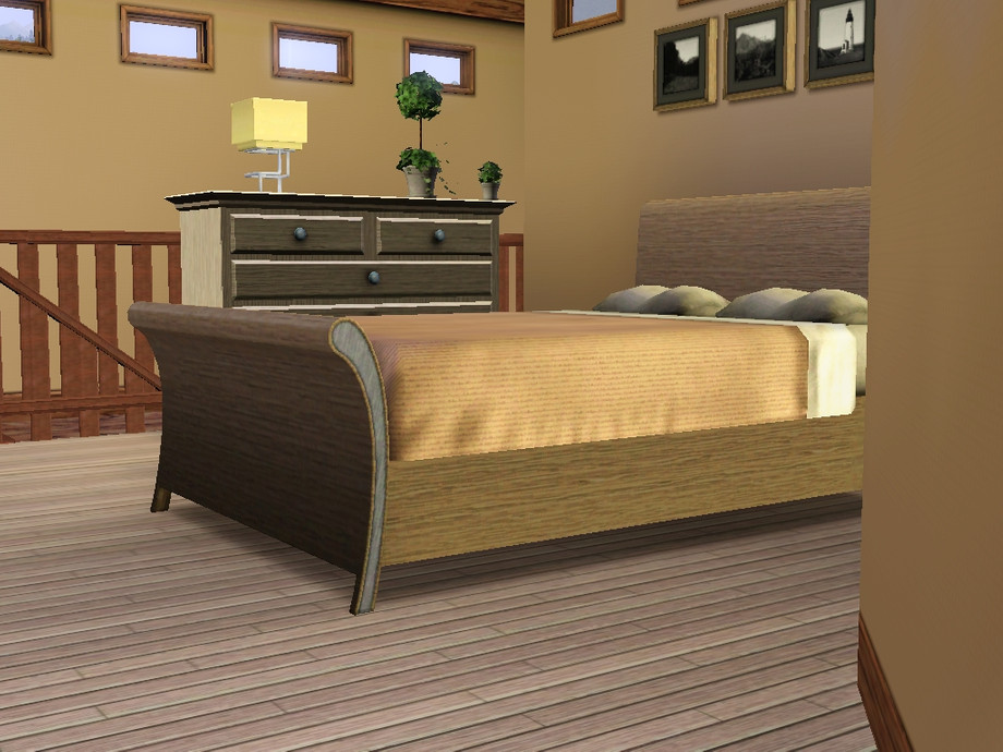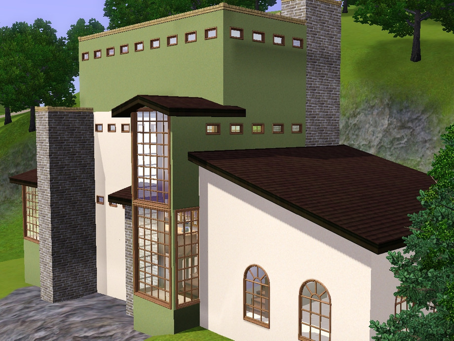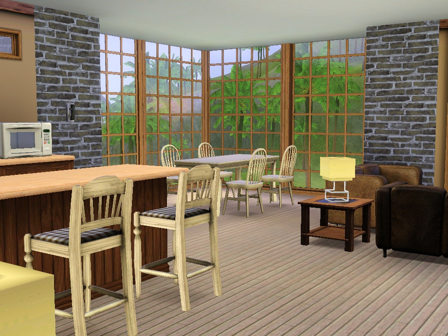 A modern, split-level home with attached garage, one bedroom and one bath. Kitchen, dining and lounge combined. Perfect for a well-off single sim. Fully furnished: 56, 000. Thanks to cyclonesue for her Colonial Windows.