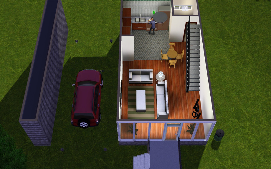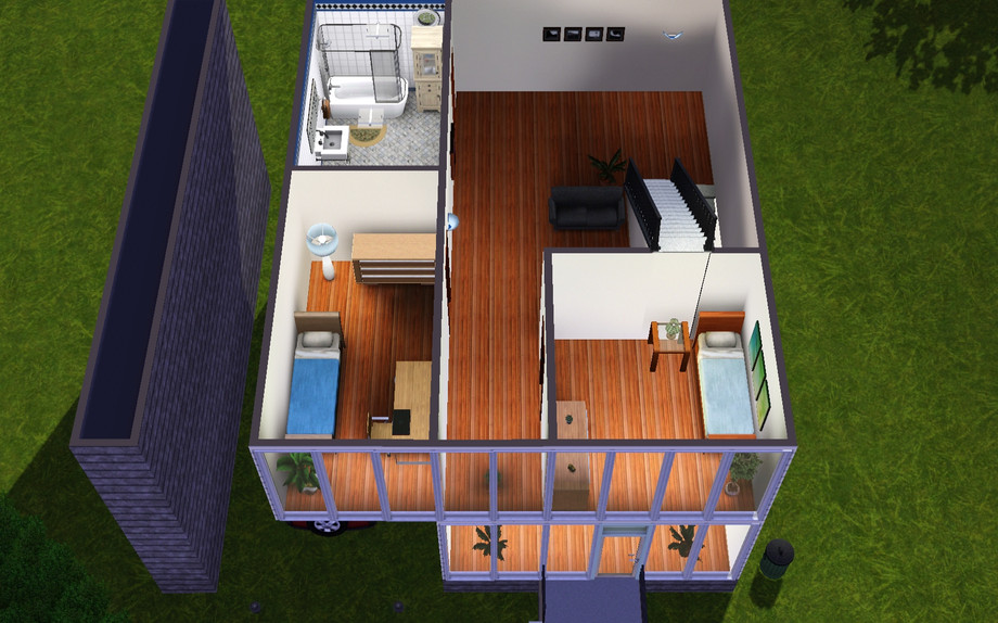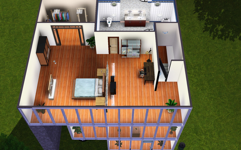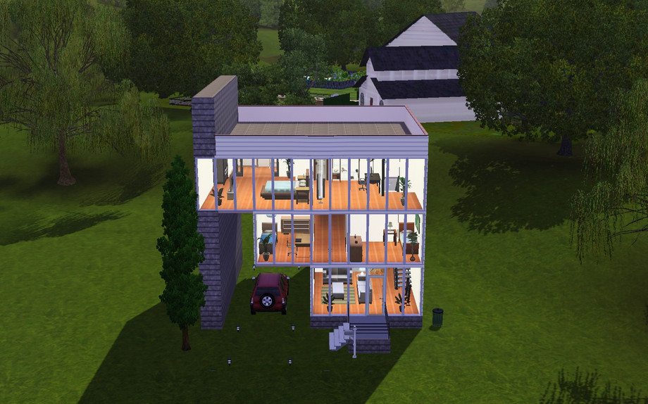 A modern 3 level design perfect for the family that doesn't really care about privacy. This house uses elements from Nite Life and Ambitions. Unlike my other houses this one is fully furnished.