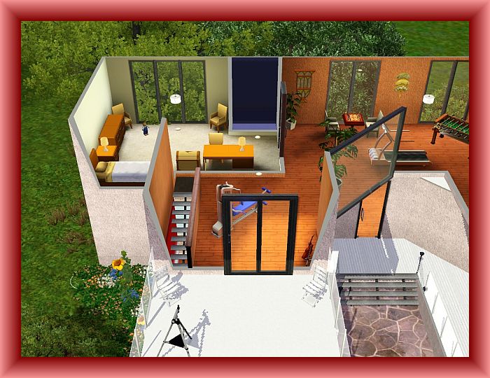 A modern comfortable home with an open plan. On the first level are kitchen/dining/living area and a bathroom. On the second level at 2 bedrooms, a large hobby and wellness area as well as a bathroom. In contrast to this house the garden is wilderness with its own charme.