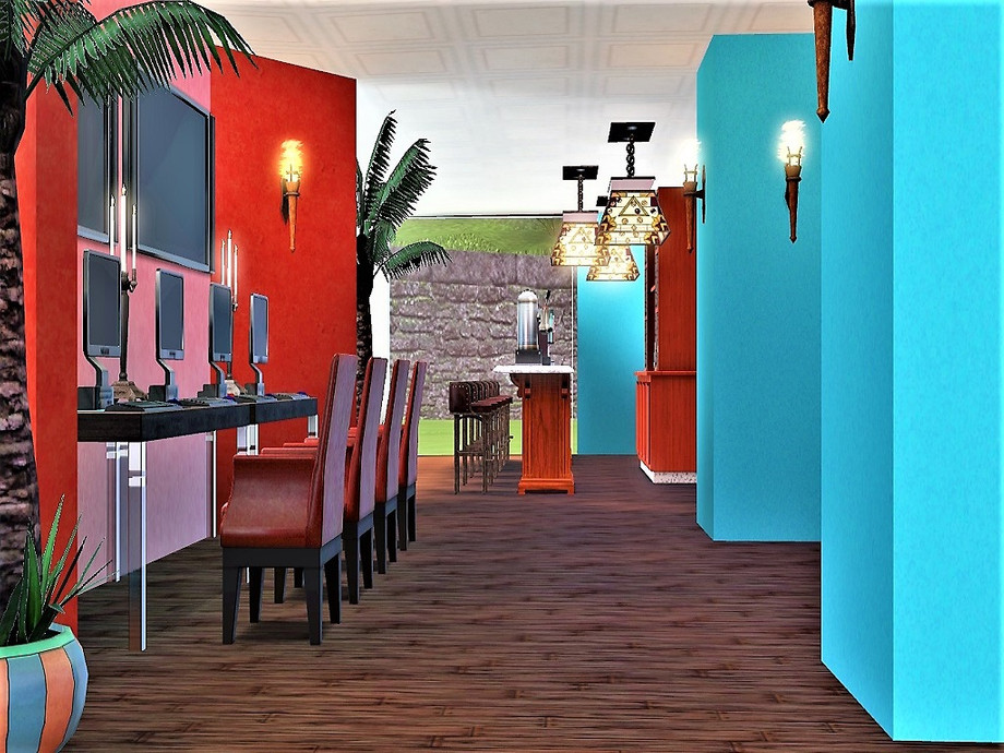Welcome to Coral Shoals Apartments! We have everything a Sim could possibly want in an apartment building! Your living quarters can be redecorated to your personal taste, you can exercise in the weight room, get a tattoo, get a makeover, play music or listen to a band play, use a computer, have a meeting, invite friends over for drinks and that's just in our lobby! Upstairs you'll find some of the most beautiful rooms any sim has ever lived in! Come and see!