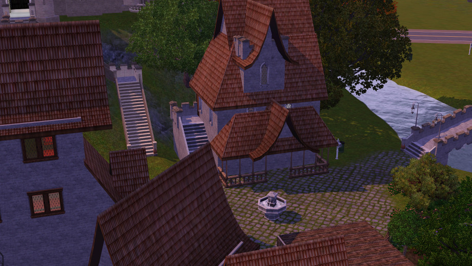 In the woods there's a delightful gazebo and a lazy river flows around the town.