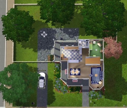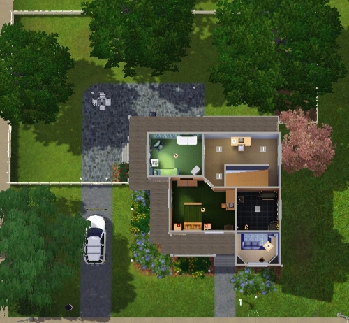 The best feature of this house is its wrap-around porch. This spacious house has 3 bedrooms, 2 baths and open living area. There is plenty of room to add a pool by removing a tree or 2. There is also a space in the backyard set-up for a small vegetable garden. The house was based on a real floor plan and has a country/victorian appeal. Originally built on 2350 Pinochie Point, but will fit nicely on any lot the same size.