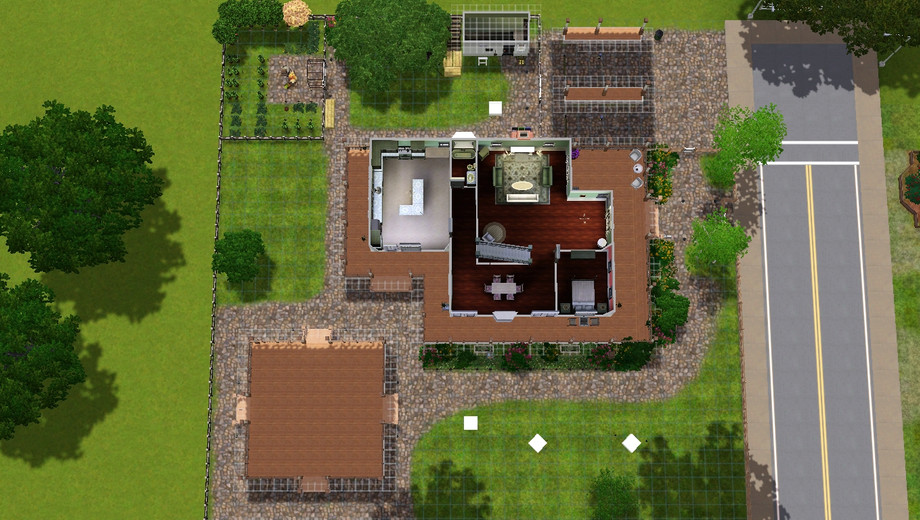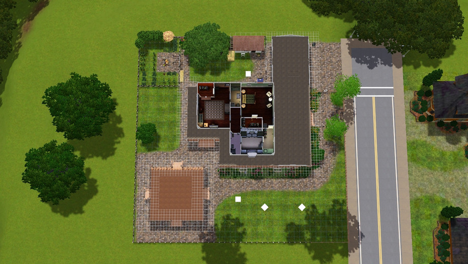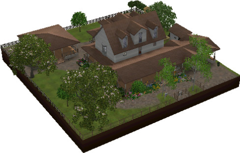 Country house on corner lot that's perfect for sims who love to entertain! Fully landscaped, partially furnished, the last owners took most everything when they moved. Very little cc. Wrap around porch, car port, large gazebo ready for outdoor kitchen and even a hot tub! Spectacular garden with 99% perfect harvestables for all plants (money tree still at excellent). Cedar lined closets (lol). Pass through dining room, downstairs guestroom that can easily be converted to an office. Storage shed leads to downstairs storm basement because this home is located in tornado alley. Basement also includes workspace for inventors and nectar maker for... nectar makers. Doubles as a get-away-from-it-all man-cave. Eat-in kitchen and upstairs laundry. This home is perfect for small families or retired couples looking to live in comfort. Play tested and gorgeous when fully furnished and decorated but I'm leaving that up to you -- the new homeowner!