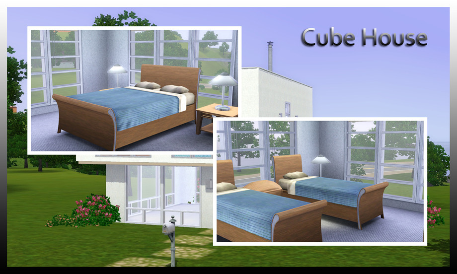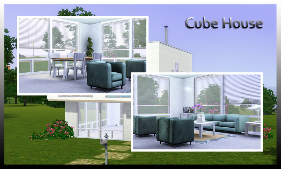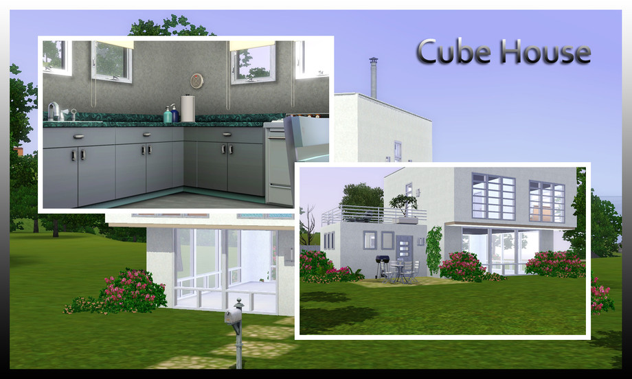 The Cube House is the Cube Cabin's twin sister. Although the floorplan is the same, this cozy cabin looks better by the sea than in the mountains. It has a living room, a kitchen, 2 bedrooms and a bathroom. Needs Hight Tech Loft, Renault Twizi, and New Year celebration free packs from the Sims 3 Store.